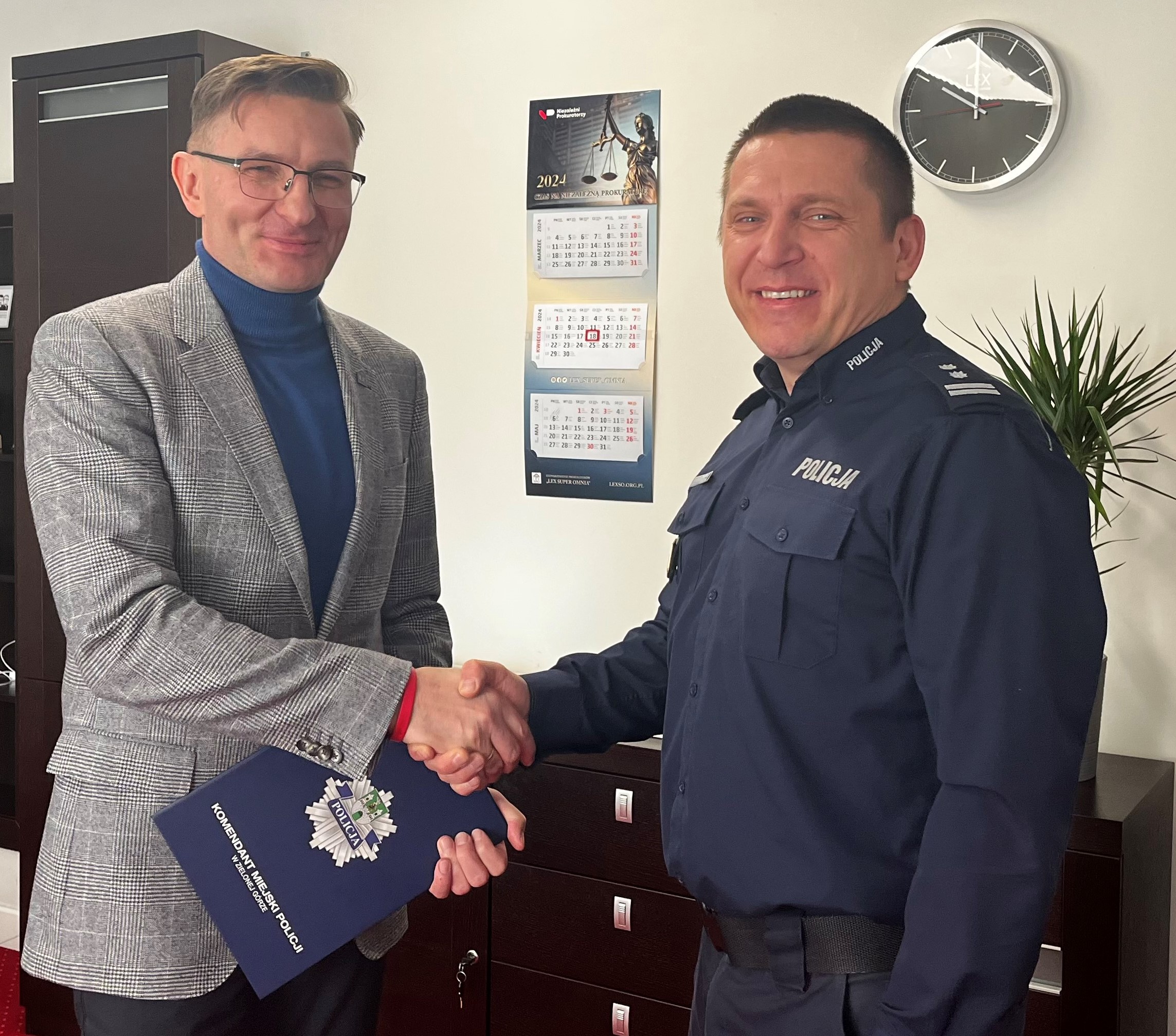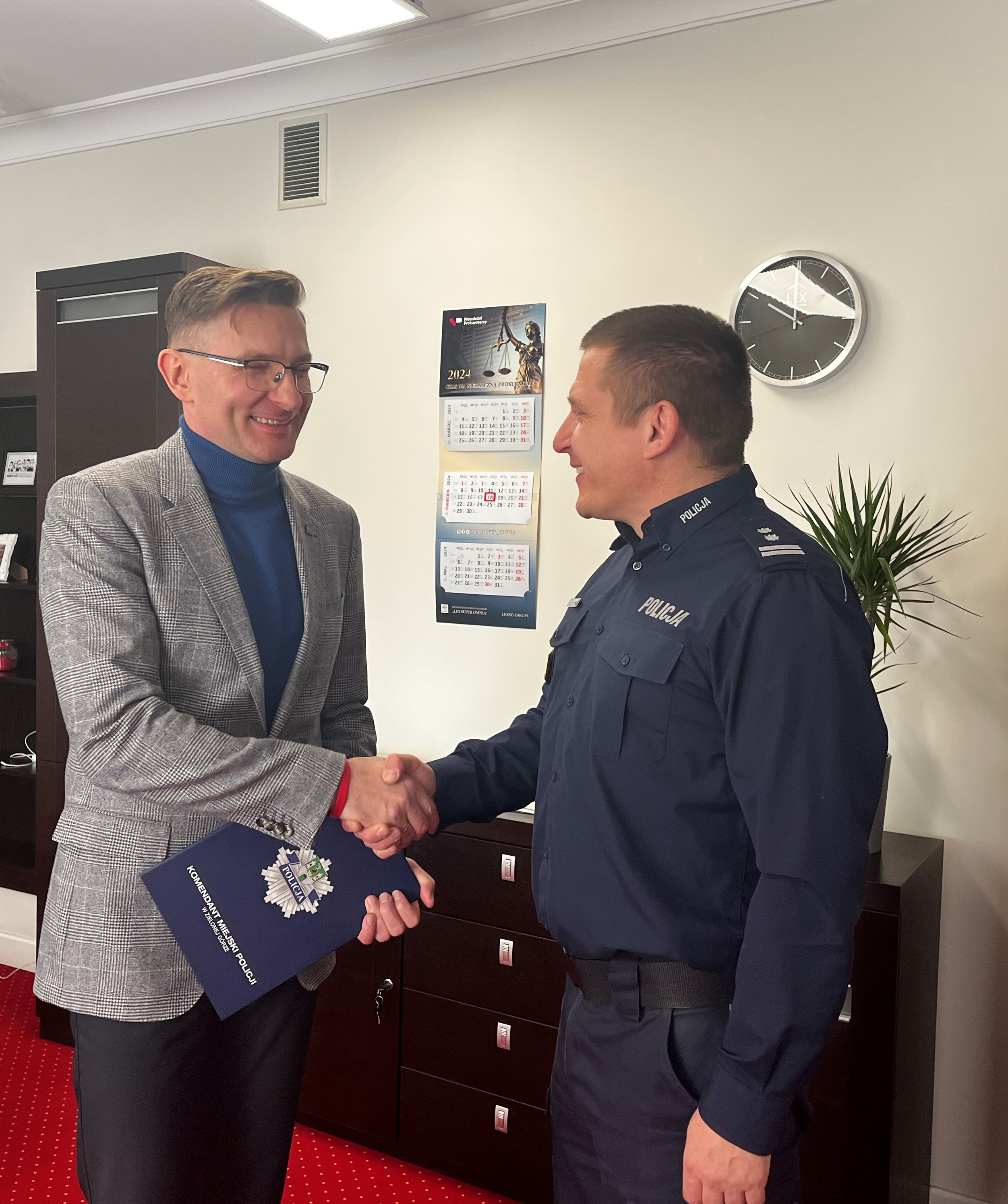 Mł.insp. Tomasz Szuda pogratulował ponadto Panu Robertowi Kmieciakowi powierzenia p.f. Prokuratora Okręgowego w Zielonej Górze.
