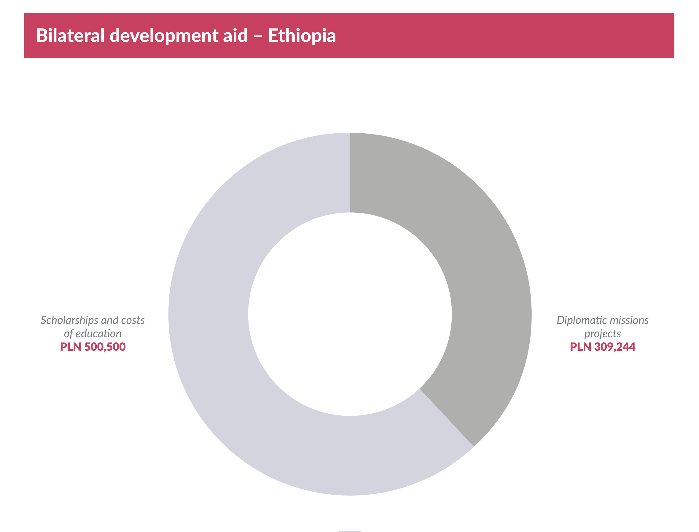 Bilateral development aid for Ethiopia in 2018 was limited to supporting minor projects in education and health care, as well as scholarships for Ethiopian students enrolled at Polish universities. Scaling down the cooperation was the result of the unstable internal situation in Ethiopia due to conflicts between ethnic and religious groups and mass migrations of the population (almost 3 million internally displaced persons as a result of domestic unrest).