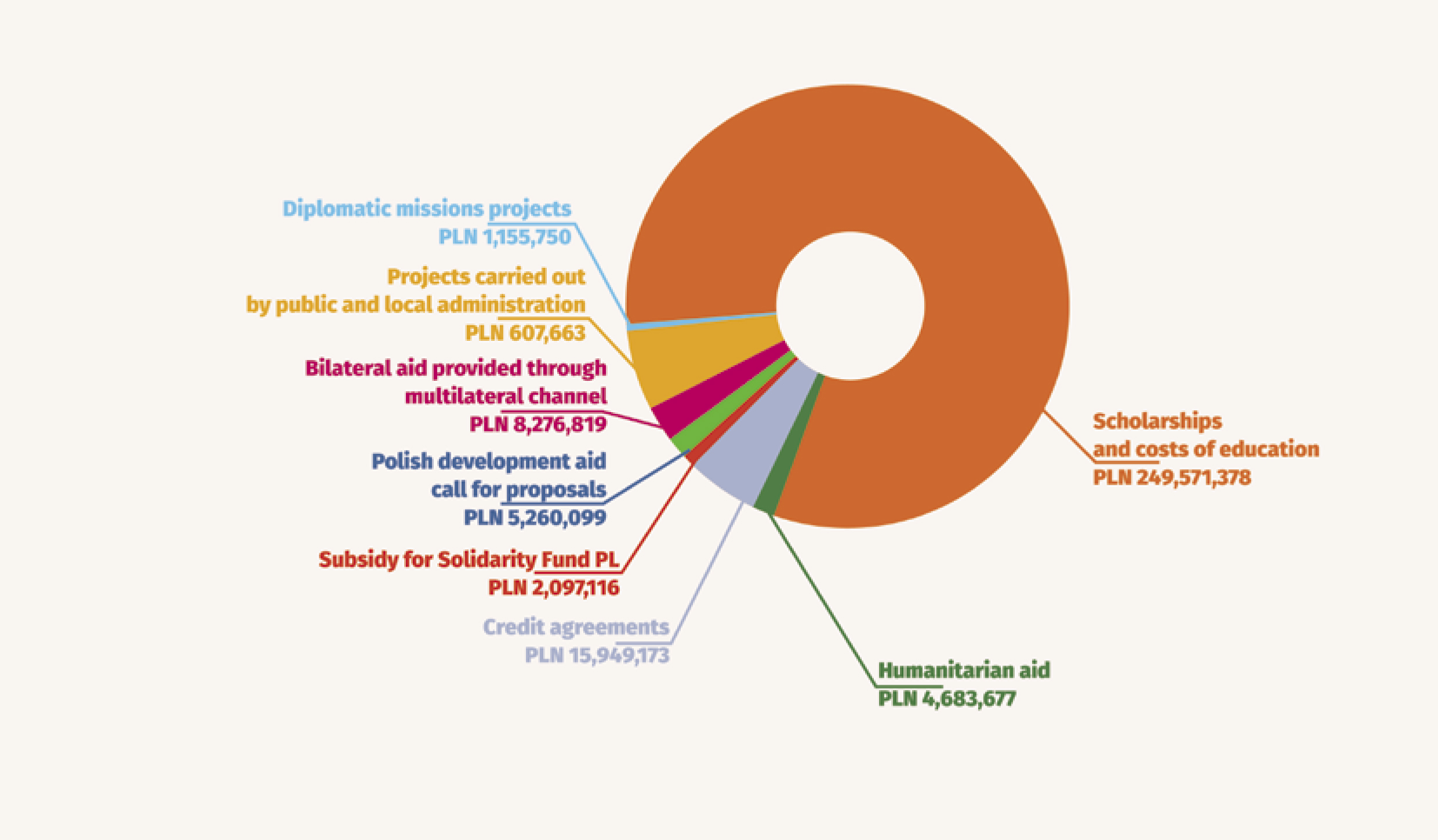 In 2019, the total ODA for Ukraine was PLN 303,494,008