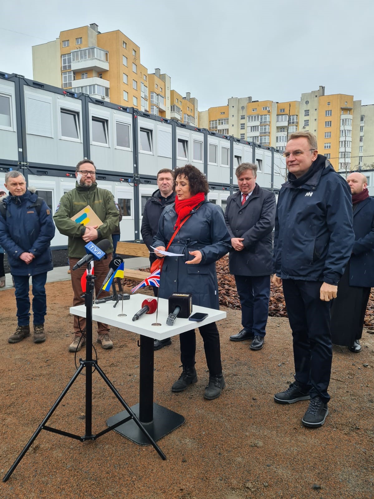 The Polish and British Ambassadors to Ukraine, Bartosz Cichocki and Melinda Simmons, attended the opening of the new accommodation village at the Lviv site, alongside key Ukrainian officials.