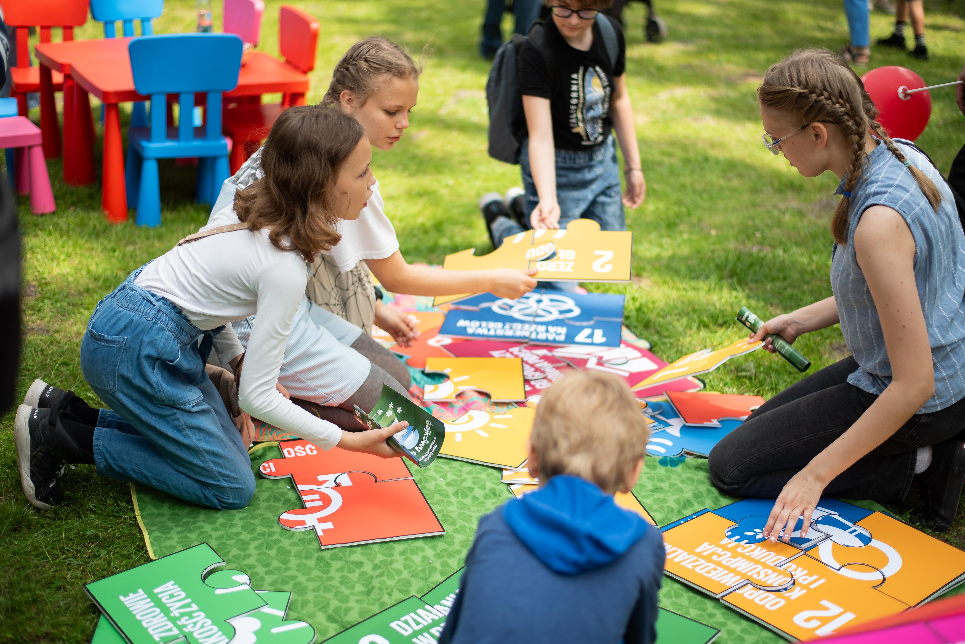 At 10 o’clock sharp, the host of the meeting, Prime Minister Donald Tusk, opened the gate to the Chancellery and invited all guests to come inside. The Polish Aid stand offered numerous attractions for children. The most popular were games and animations conducted by experienced animators, which allowed young participants to learn what Sustainable Development Goals (SDGs) are, what classrooms on other continents look like, and where water on Earth comes from. The children did simple jigsaw puzzles and ordered drawings and pictures in two categories: human behaviour that contributes to the implementation of the SDGs and behaviour that causes environment pollution, violates human rights or exacerbates social inequalities. There was also an arts activity titled “Let’s colour our world!” during which children could create an image of the Earth with the use of unusual materials such as puff snacks, salt or toilet paper. While painting, they were asked whether we should take care of our planet and how it could be done. At the end of the workshops, each child willing to have a water tattoo could get one that featured one of the 17 Sustainable Development Goals and could have a photo taken in the SDG frame as a keepsake of the day. The young guests could also try sweet treats, including Toruń gingerbread and lollipops.