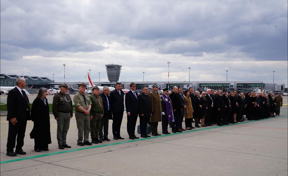 Na płycie lotniska hołd Zmarłej oddali przedstawiciele najwyższych władz i instytucji państwowych, ambasady RP w Londynie oraz brytyjska Polonia.