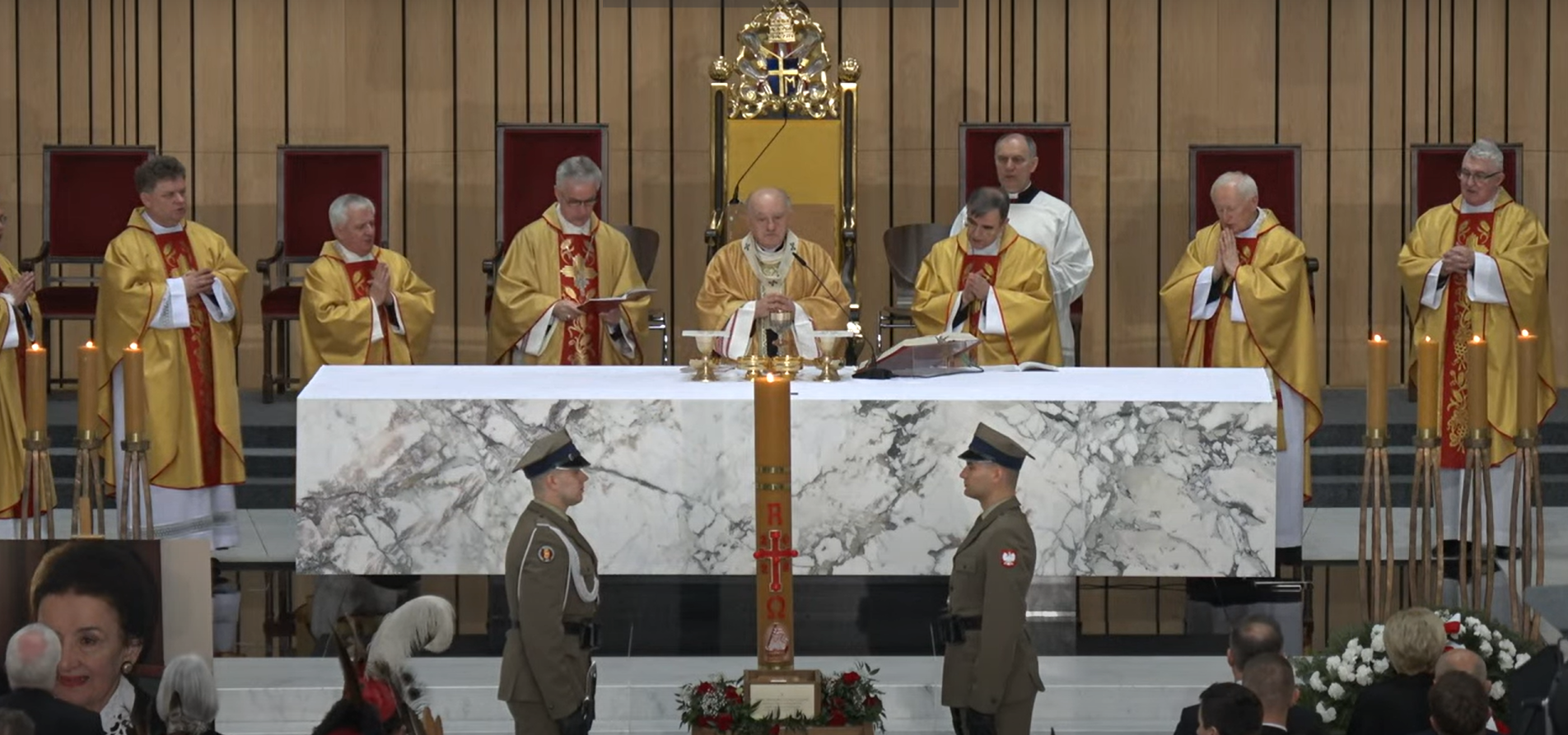 Podczas ceremonii powitania na polskiej ziemi urny z prochami Zmarłej, Orkiestra Reprezentacyjna Wojska Polskiego odegrała „Marsz żałobny” Fryderyka Chopina. Po przeniesieniu urny na katafalk w asyście wojskowego posterunku honorowego została odmówiona modlitwa.