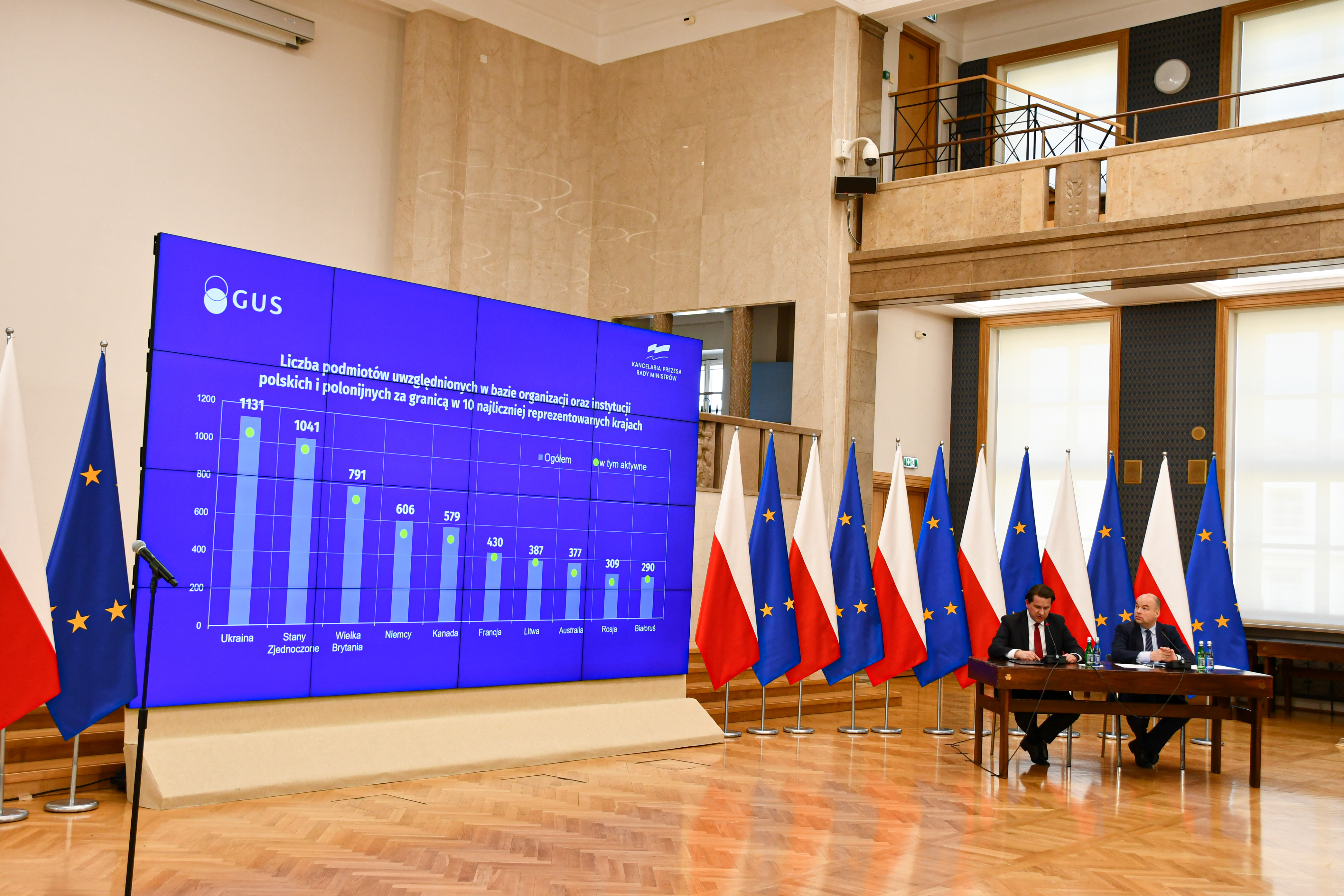 10 maja 2022 r. w Kancelarii Prezesa Rady Ministrów, w Warszawie, Pełnomocnik Rządu do spraw Polonii i Polaków za Granicą, Minister Jan Dziedziczak oraz Prezes Głównego Urzędu Statycznego dr Dominik Rozkrut zaprezentowali w Kancelarii Prezesa Rady Ministrów najnowszą wersję bazy organizacji oraz instytucji polskich i polonijnych za granicą.