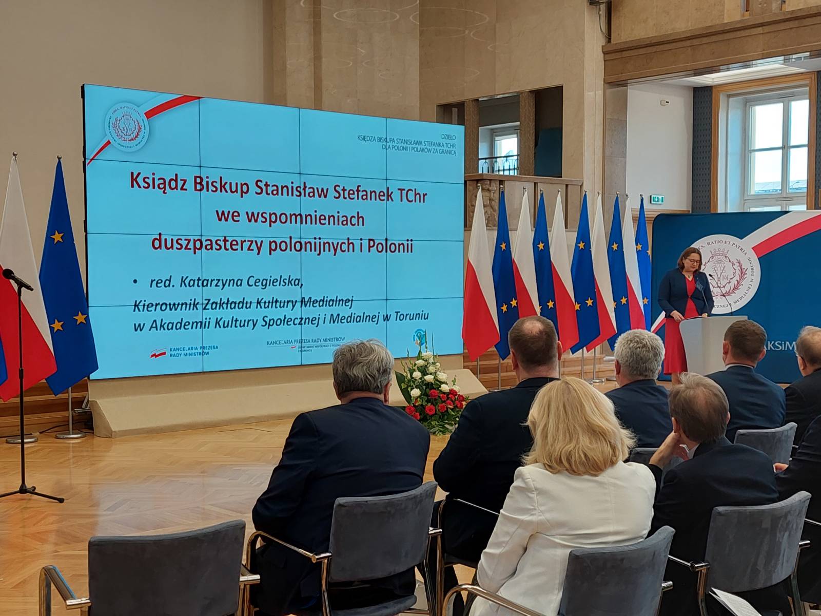 Redaktor Katarzyna Cegielska, Kierownik Zakładu Kultury Medialnej w AKSiM a także ks. Krzysztof Jurczak, Prezes Fundacji Vita Familiae, inicjator wydania zbioru wspomnień o wybitnym kapłanie, mówili o relacjach i uczuciach, jakimi darzyli księdza biskupa duszpasterze polonijni i przedstawiciele Polonii, a także wszyscy, którzy mieli zaszczyt spotkać go na swojej drodze. Obradom przysłuchiwali się członkowie rodziny księdza biskupa – jego brat Jan i bratanek Paweł Stefanek, a także s. Maksymiliana Lont, która przez 20 lat prowadziła kancelarię księdza biskupa.