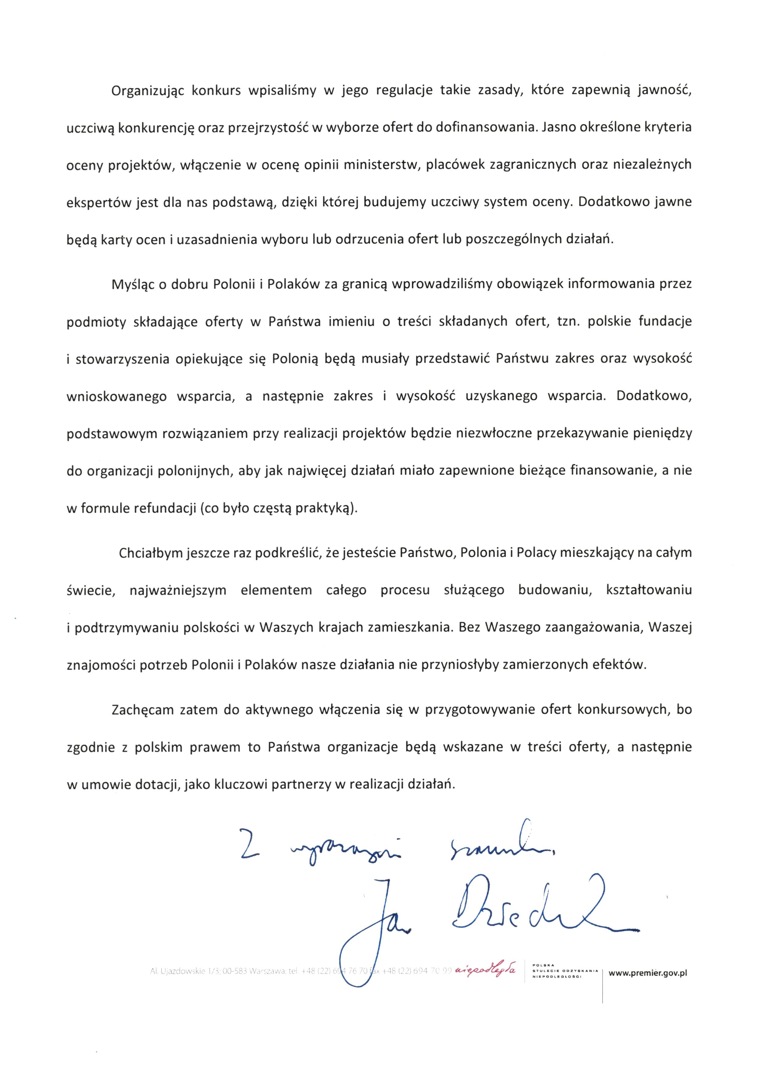 List pełnomocnika rządu do spraw Polonii i Polaków za granicą do organizacji Polonijnych oraz Polaków za granicą