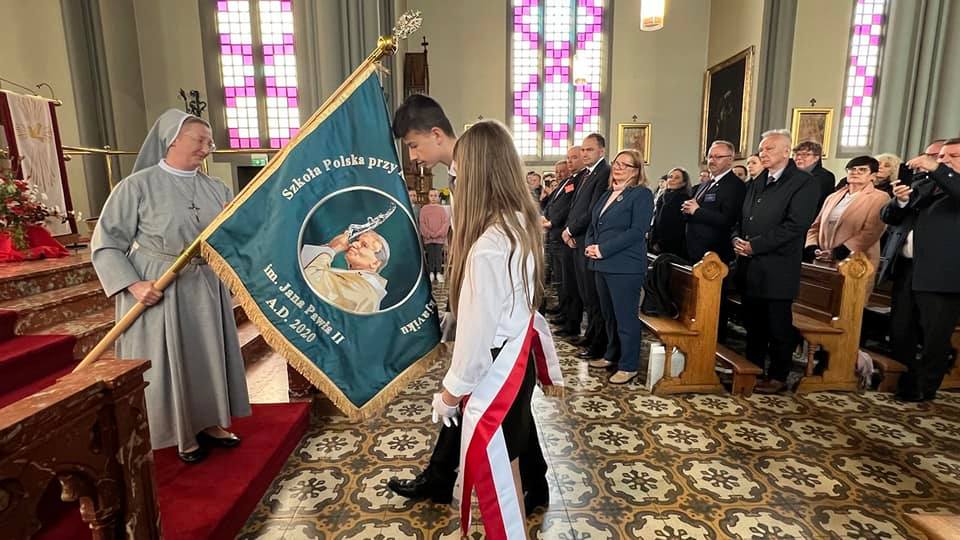 Delegacja uczestniczyła również we Mszy Św. w Katedrze pw. Chrystusa Króla w Reykjaviku, podczas której bp. David Tencer OFMCap dokonał poświęcenia sztandaru Szkoły Polskiej im. Jana Pawła II.