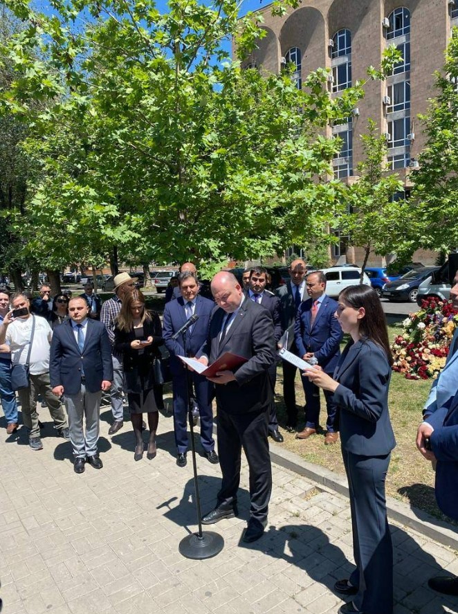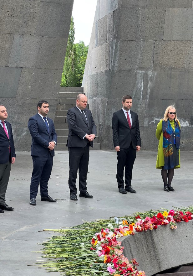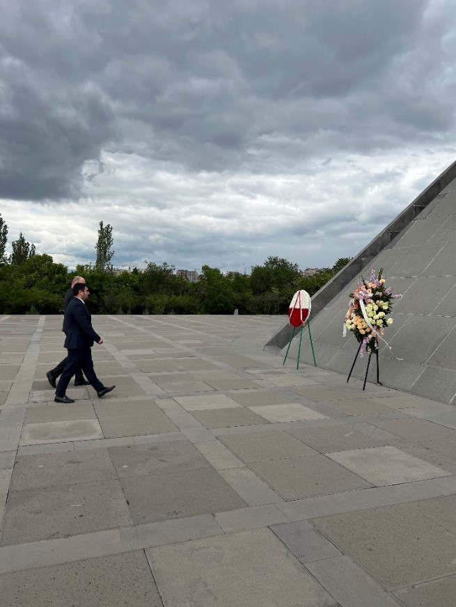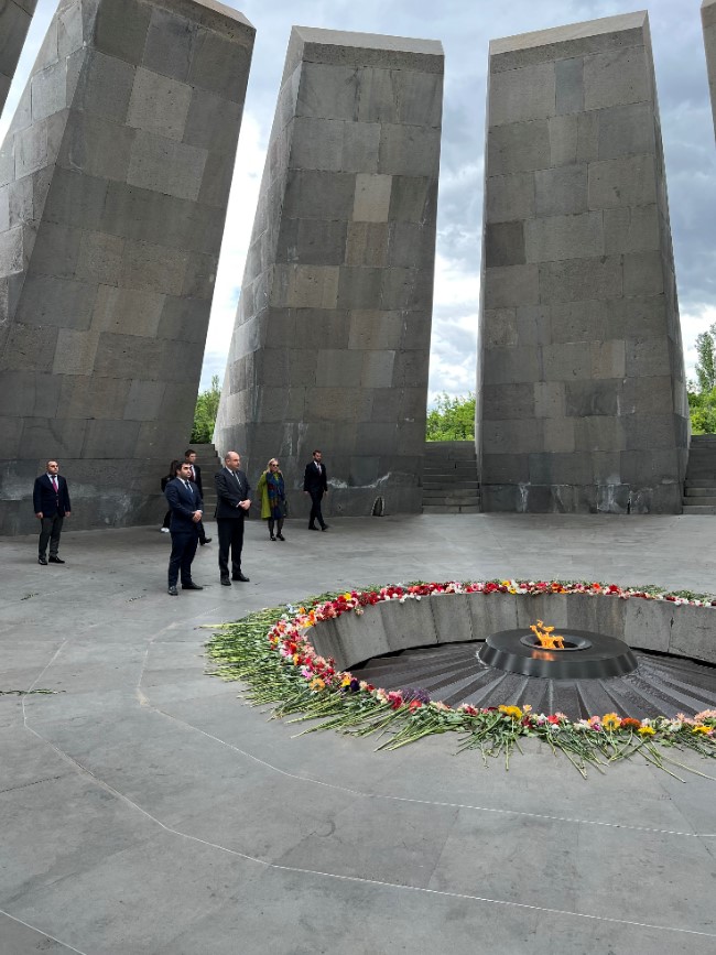 Wizyta w Armenii rozpoczęła się od złożenia kwiatów pod pomnikiem ofiar ludobójstwa Ormian popełnionego w czasie I wojny światowej. W latach 1915–1917 Turcy zamordowali w Imperium Osmańskim ok. 1,5 miliona chrześcijańskich Ormian. W 2005 r. Sejm RP przez aklamację uznał to ludobójstwo, oddając hołd pomordowanym. Memoriał Ludobójstwa Ormian został zbudowany w 1967 r. na wzgórzu Cicernakaberd po serii manifestacji narodu ormiańskiego, który domagał się przywrócenia tematu ludobójstwa do przestrzeni publicznej.