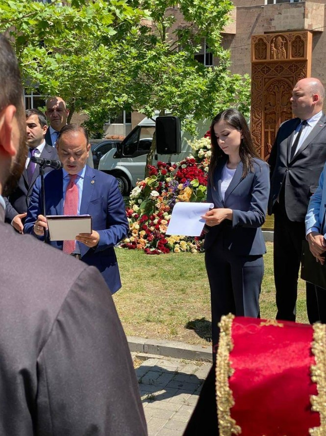 Minister Dziedziczak, razem z Ministrem Z. Sinanianiem, Konsulem Honorowym Armenii w Zabrzu H. Bojadżanem, który był pomysłodawcą projektu, a także w towarzystwie Chargé d'Affairs Ambasady RP w Erywaniu M. Różyckiego, polskich i ormiańskich parlamentarzystów oraz Polonii, dokonał inauguracji chaczkaru poświęconego Św. Janowi Pawłowi II. Polski chaczkar upamiętnia dwie rocznice: 1700-lecie przyjęcia chrztu przez Armenię (301 r.) oraz 20-lecie pielgrzymki do Armenii papieża Jana Pawła II (2001 r.). Ceremonii poświęcenia chaczkaru dokonali duchowni Apostolskiego Kościoła Ormiańskiego z Nuncjuszem Apostolskim w Armenii na czele.
