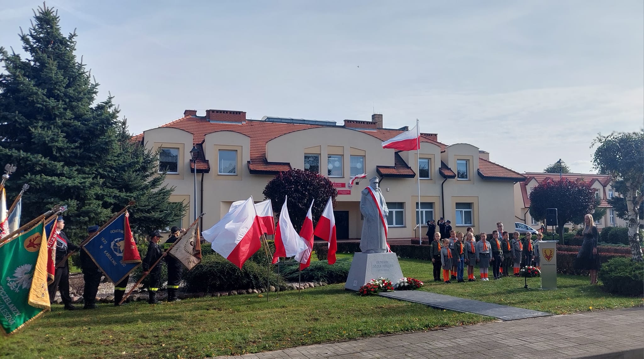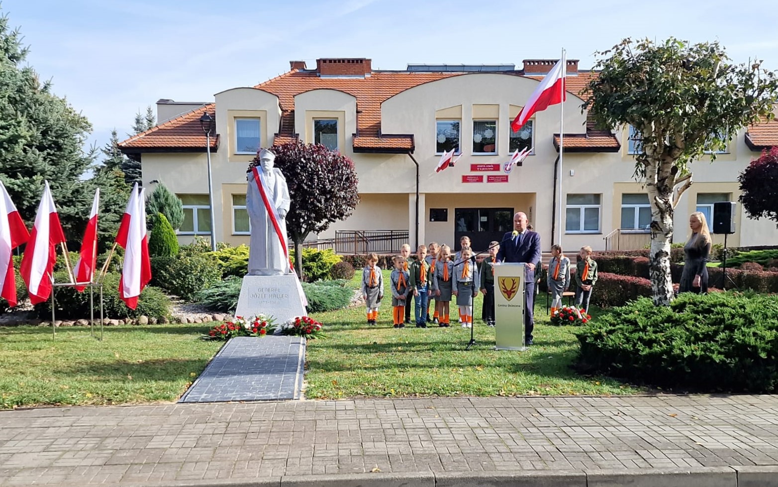 W uroczystości wzięli udział m.in. Stanisław Glapiak burmistrz miasta i gminy Osieczna, Juliusz Szymczak-Gałkowski wiceprezes Zarządu Fundacji Pomoc Polakom na Wschodzie oraz autor pomnika, artysta-rzeźbiarz Radosław Tusznio. Odsłonięcie pomnika upamiętniającego żołnierzy Błękitnej Armii generała Hallera zgromadziła liczne grono mieszkańców gminy oraz społeczność miejscowej szkoły noszącej imię Powstańców Wielkopolskich. Wykład na temat postaci generała Józefa Hallera, wygłosił Jarosław Wawrzyniak starosta leszczyński.