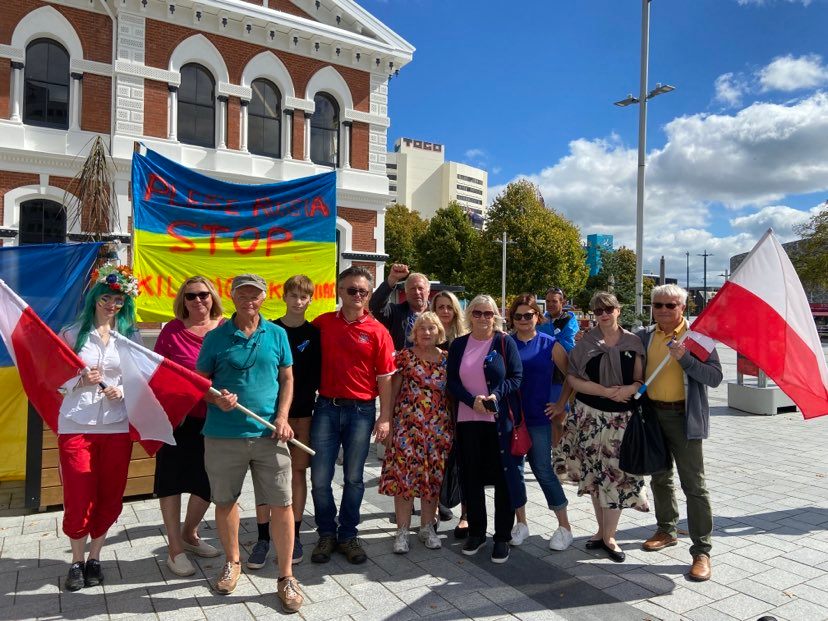 Polacy oraz społeczności środkowoeuropejskie zamieszkałe w Christchurch (Nowa Zelandia), kontynuują protest przeciwko rosyjskiej agresji na Ukrainę.