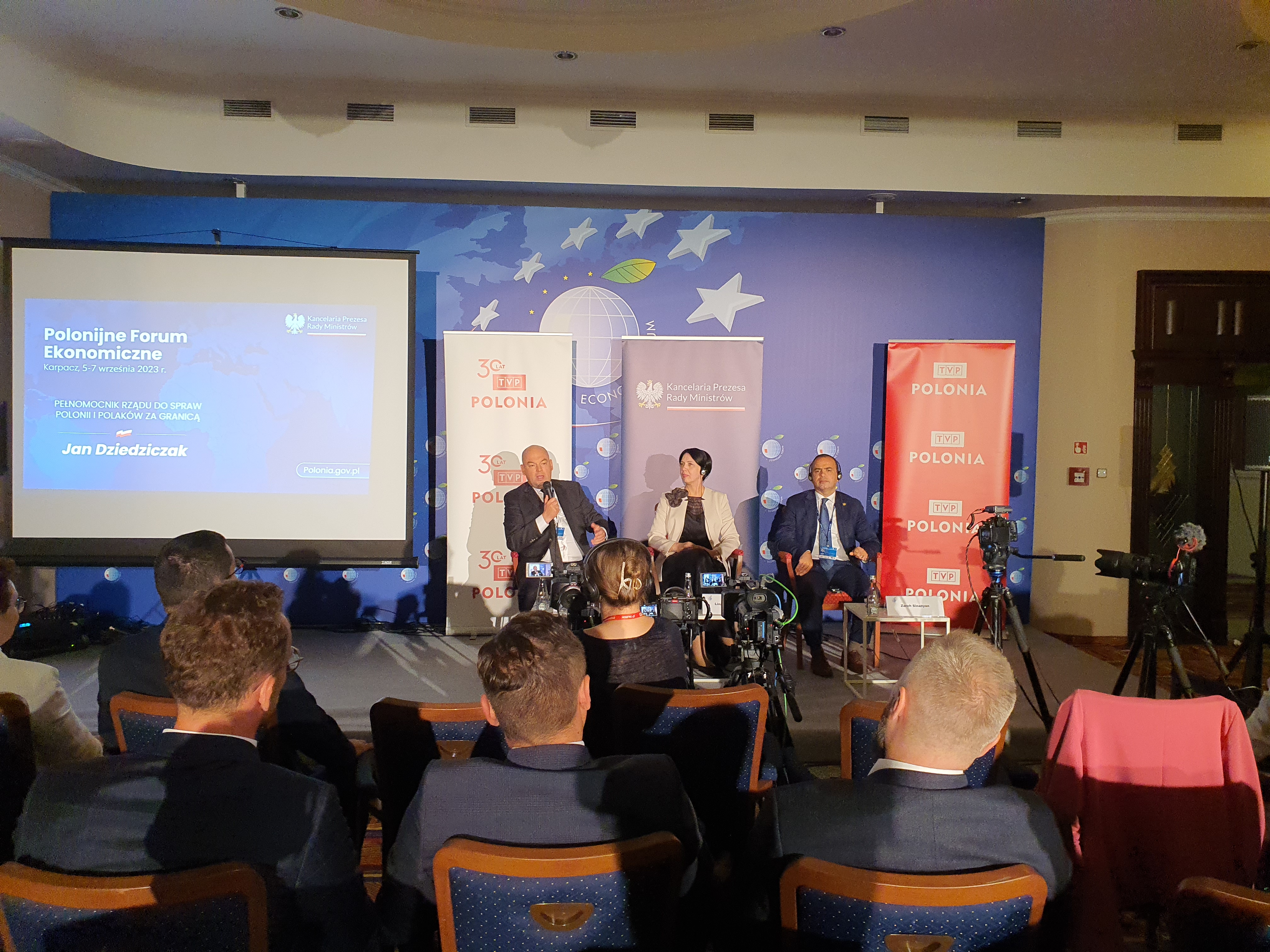 "Forum Ekonomiczne w Karpaczu jest miejscem, gdzie spotyka się wielka polityka, wielki biznes, świat dziennikarski. Nie wyobrażamy sobie, żeby w tym miejscu nie pojawiła się także Polonia" – mówił gospodarz spotkania minister Jan Dziedziczak.