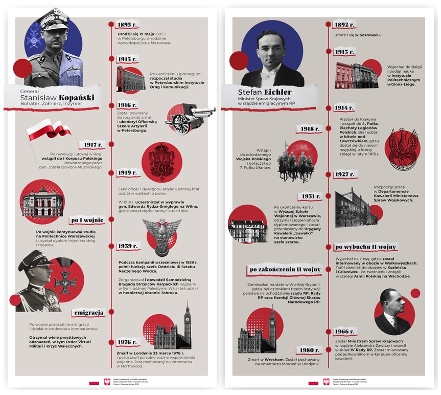 "Generał Stanisław Kopański i podpułkownik Stefan Eichler to wzorcowe przykłady przedwojennych polskich oficerów. Oddani sprawie wolnej Polski do samego końca, po wojnie musieli się pogodzić z utratą możliwości powrotu do ukochanej ojczyzny. Zostali na obczyźnie aktywnie angażując się w życie polskiej emigracji. Teraz wracają do domu" – mówi minister Jan Dziedziczak.