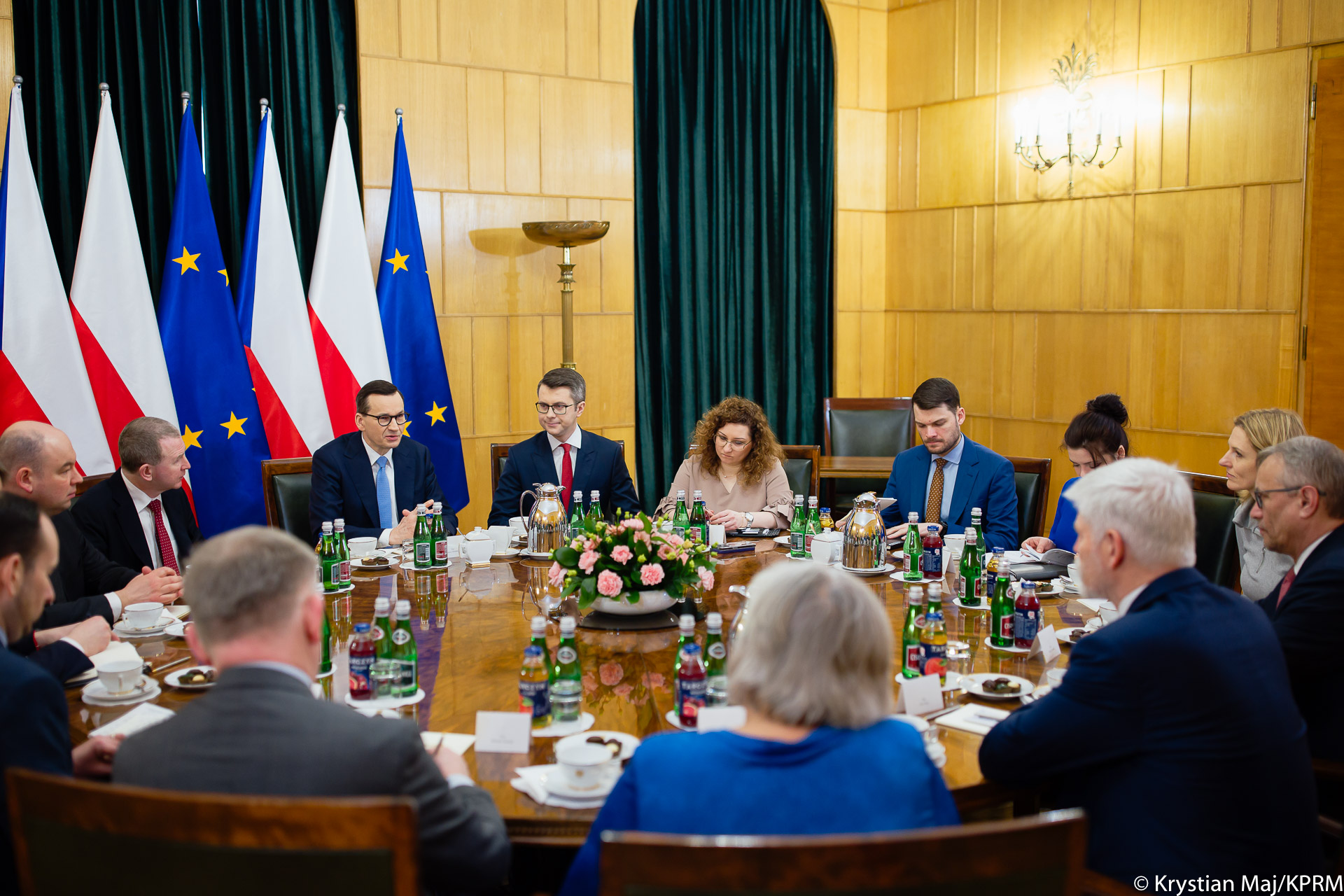 Dzisiaj w Kancelarii Prezesa Rady Ministrów Minister Jan Dziedziczak, Pełnomocnik Rządu do spraw Polonii i Polaków za Granicą wraz z Premierem Mateuszem Morawieckim oraz Ambasadorem RP w Republice Czeskiej Mateuszem Gniazdowskim, Ministrem Piotrem Müllerem - Rzecznikiem Rządu oraz Minister Izabelą Antos - zastępcą Szefa Kancelarii Premiera wziął udział w spotkaniu z Prezydentem Republiki Czeskiej Petrem Pavlem.