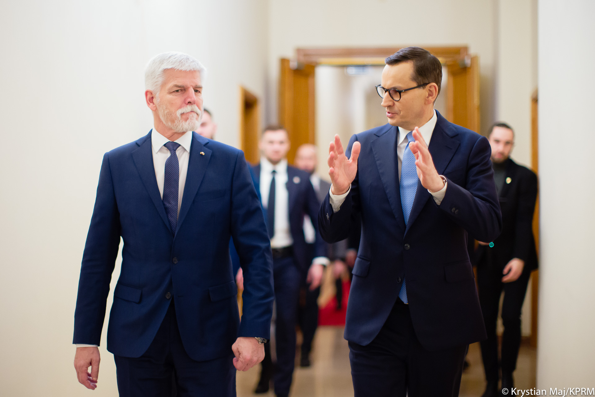 Podczas wizyty w Kancelarii Prezesa Rady Ministrów zostały poruszone kwestie współpracy polsko-czeskiej oraz zagadnienia dotyczące bezpieczeństwa, przede wszystkim związane z rosyjskim atakiem na Ukrainę.