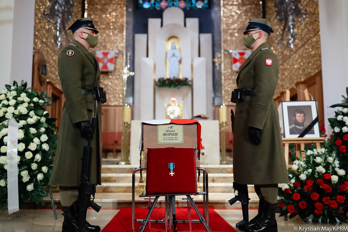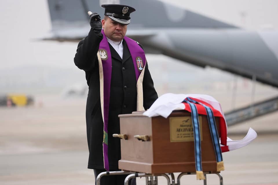 Następnego dnia polska delegacja rządowa wylądowała na wojskowym lotnisku Okęcie w Warszawie, na którym rozpoczęły się państwowe uroczystości pogrzebowe. Szczątki Maurycego Mochnackiego zostały przewiezione do Katedry Wojska Polskiego, w której Premier Mateusz Morawiecki i obecne delegacje rządowe oraz ambasador Republiki Francji, rodzina i bliscy i znajomi, oddali hołd polskiemu bohaterowi. Mszę Św. celebrował ks. Prał. Kan. Płk Bogusław Radziszewski.