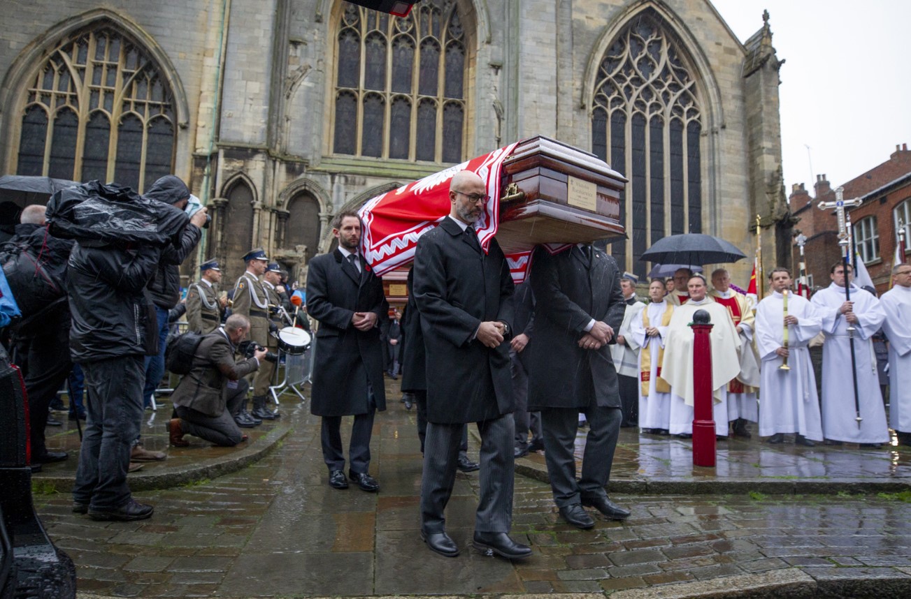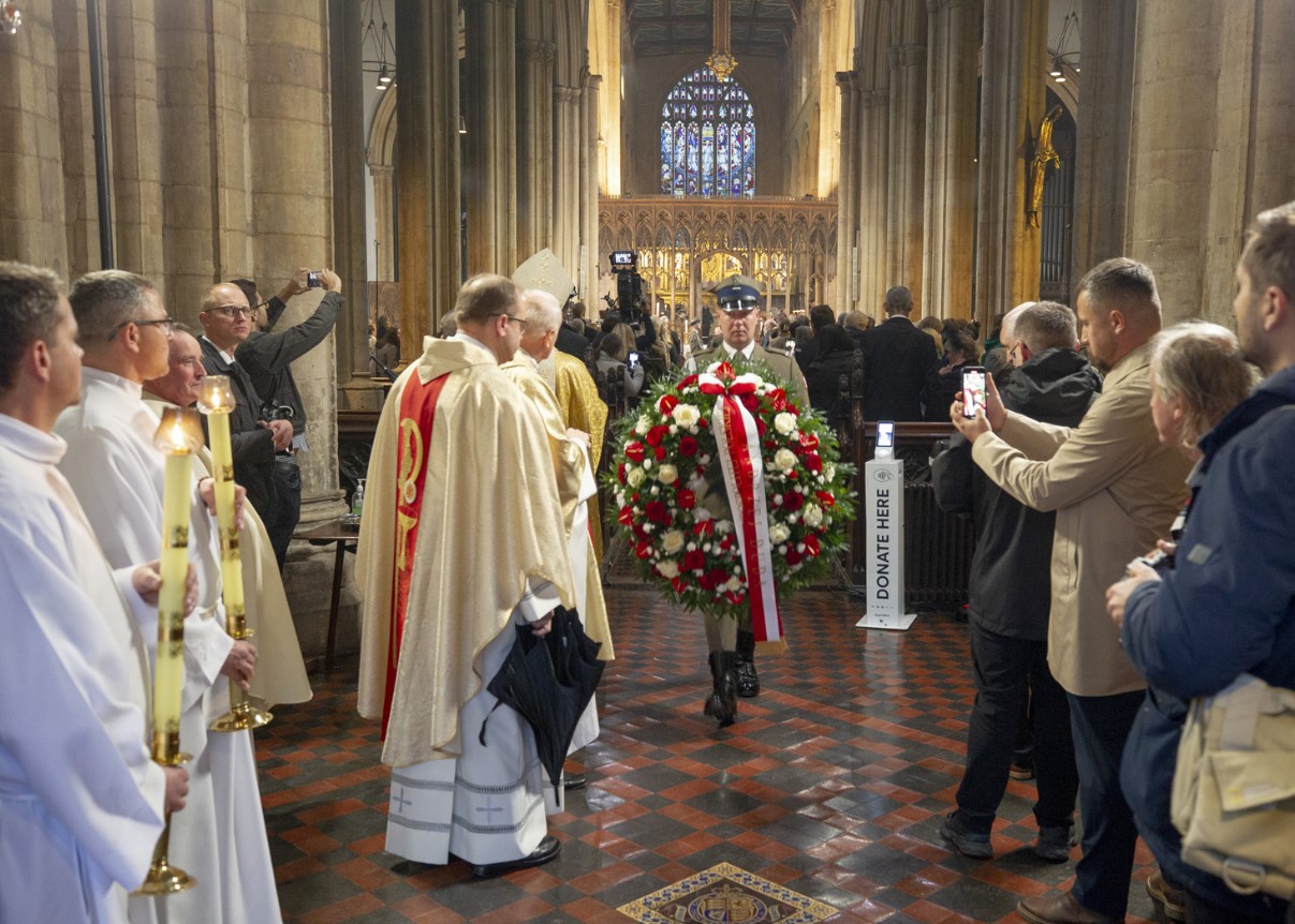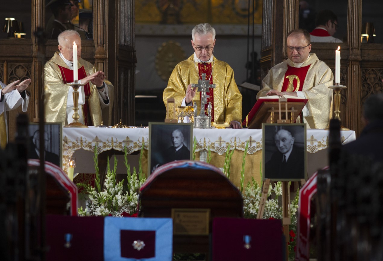 Następnie Minister Jan Dziedziczak wraz polską delegacją uczestniczył w uroczystej Mszy Św. pogrzebowej, sprawowanej przez Księdza Biskupa Wiesława Lechowicza. Uroczystość pożegnania Prezydentów RP na uchodźstwie jest okazją do wyrażenia wdzięczności Polonii za ocalenie naszej Ojczyzny i jej wolnościowych dążeń oraz tego wszystkiego, co zawiera się w tym wyjątkowym słowie "Ojczyzna".