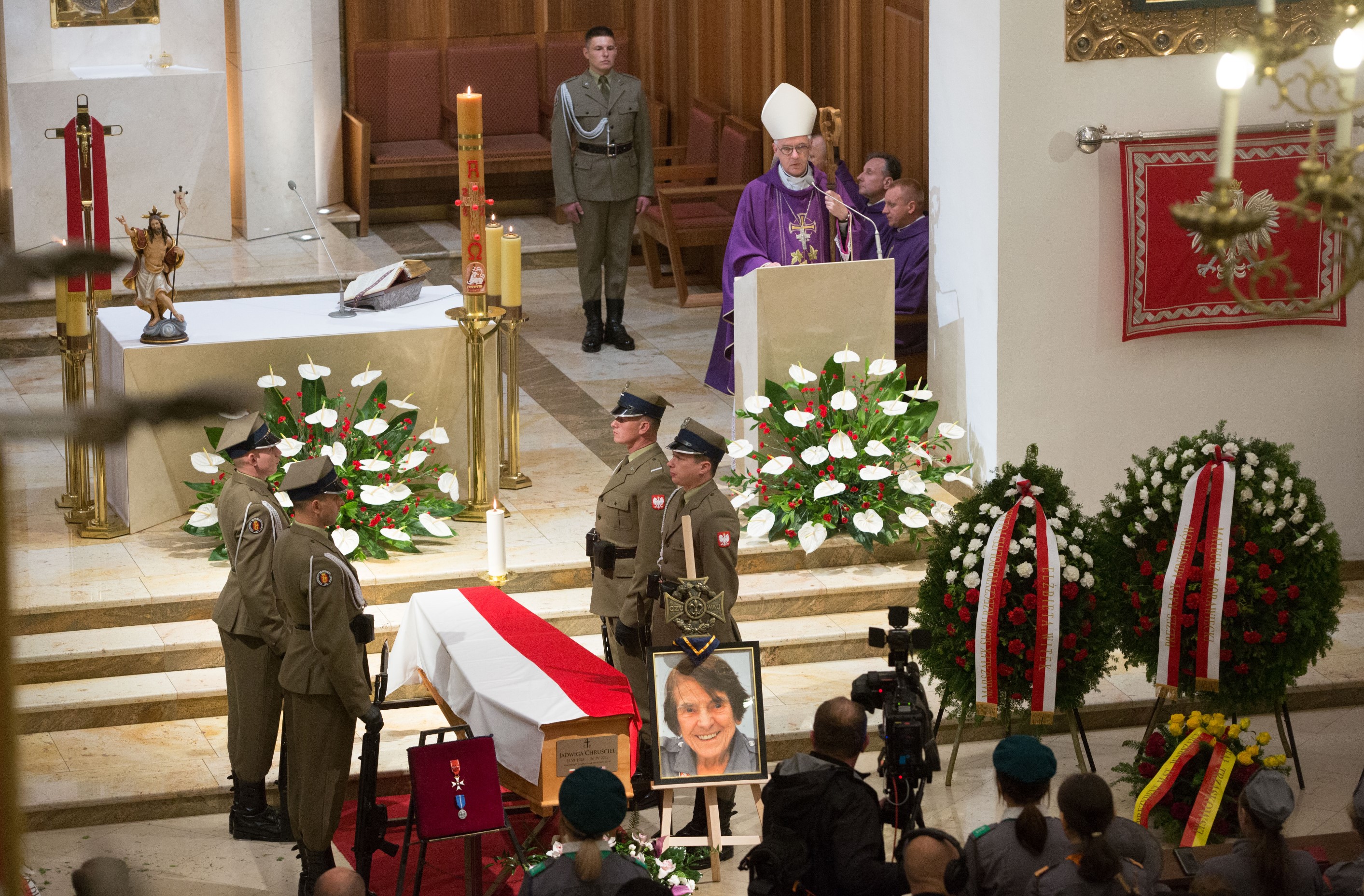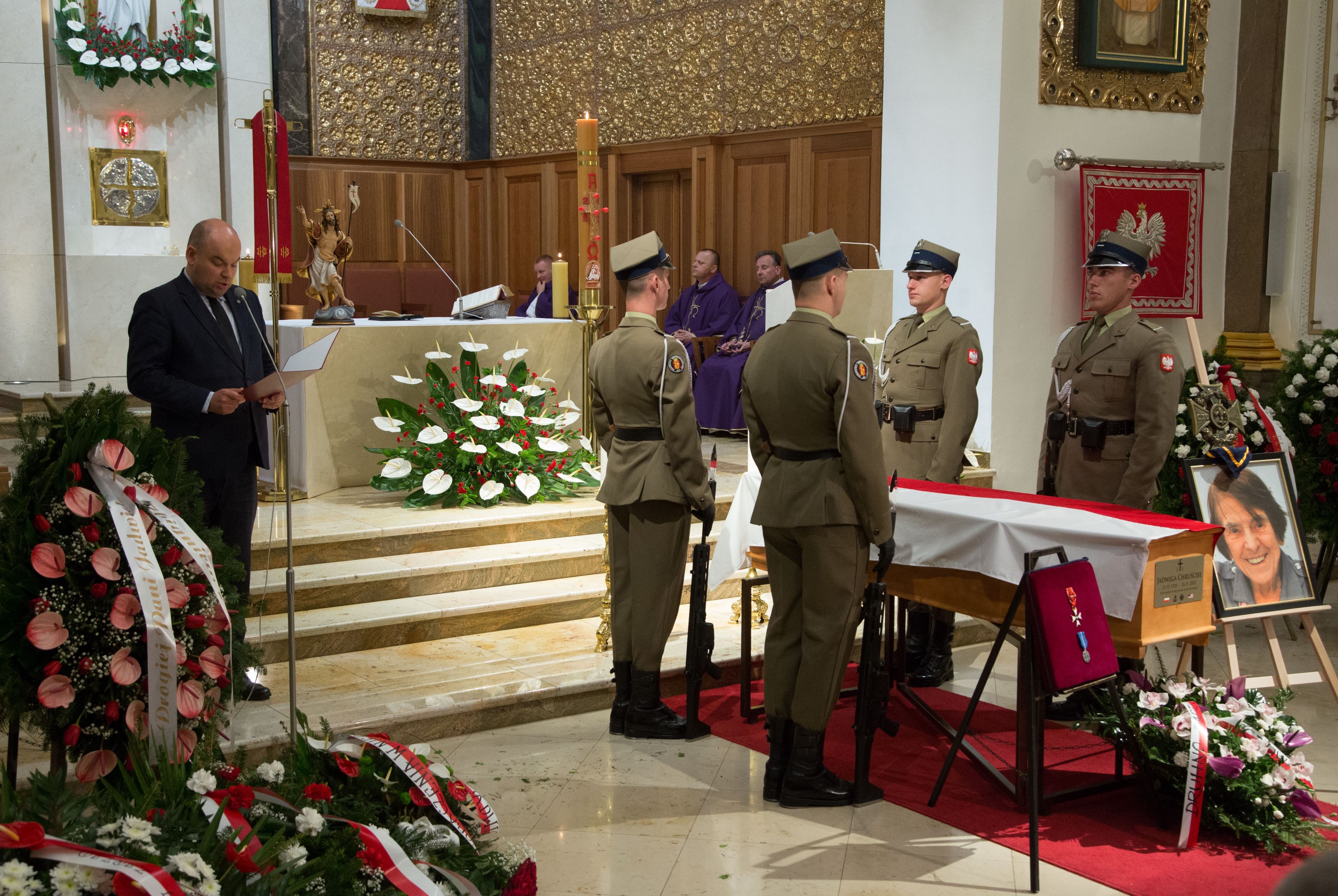 Minister Jan Dziedziczak, Pełnomocnik Rządu do Spraw Polonii i Polaków za Granicą, w imieniu Premiera RP Mateusza Morawieckiego, odczytał list skierowany do uczestników Mszy Świętej pogrzebowej, w Katedrze Polowej Wojska Polskiego, której przewodniczył biskup polowy Wojska Polskiego Wiesław Lechowicz. Msza Św. była sprawowana w intencji ś.p. Jadwigi Chruściel, bohaterki i uczestniczki Powstania Warszawskiego.