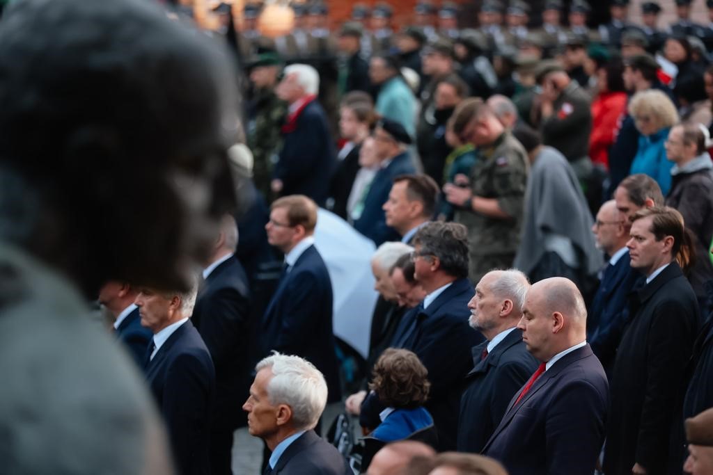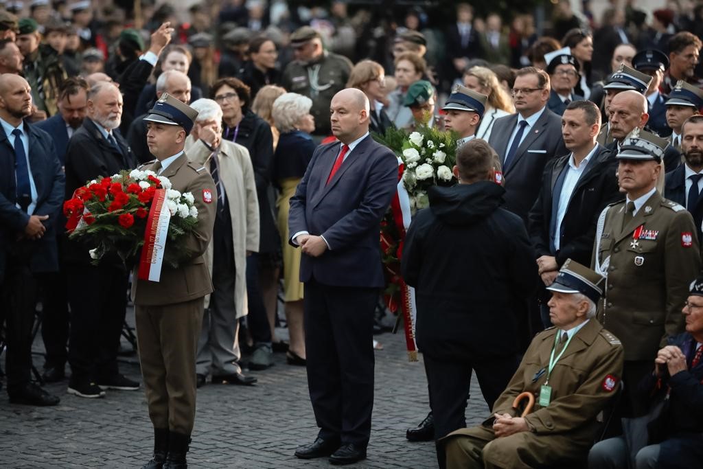 Przemawiając przy pomniku Powstania Warszawskiego Prezydent RP Andrzej Duda oddał hołd "rycerzom biało–czerwonej". Pełnomocnik Rządu do spraw Polonii i Polaków za Granicą Minister Jan Dziedziczak uczcił pamięć bohaterów sierpniowego zrywu w 1944 r. złożeniem okolicznościowej wiązanki kwiatów.