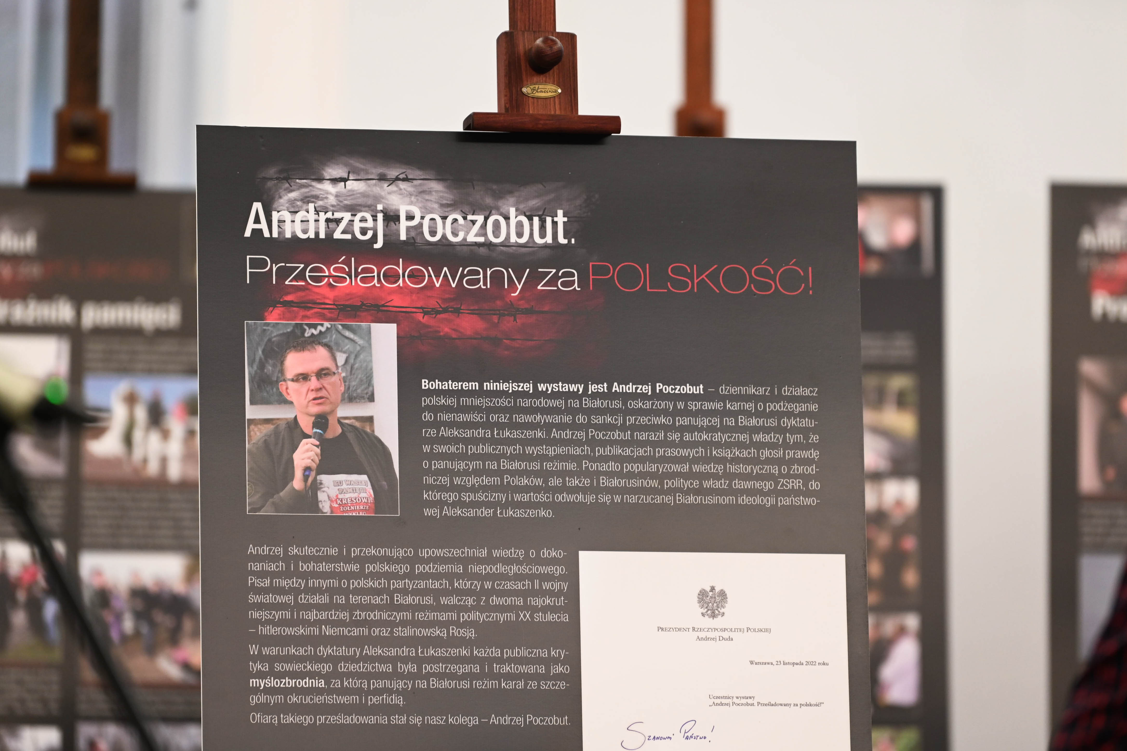 Wystawa składa się z kilkunastu plansz przedstawiających zdjęcia Andrzeja Poczobuta, przybliżające jego działalność jako dziennikarza, publicysty oraz osoby działającej na rzecz praw Polaków na Białorusi, a także fotografie z demonstracji prowadzonych w jego obronie. Andrzej Poczobut jest polsko-białoruskim dziennikarzem, członkiem zarządu zdelegalizowanego przez białoruski reżim Związku Polaków na Białorusi. 16 stycznia w Grodnie, 22 miesiące po aresztowaniu, rozpoczął się jego proces. Reżim Łukaszenki oskarżył Poczobuta o "wzniecanie nienawiści" oraz działanie na szkodę Białorusi, za co grozi mu kara do 12 lat pozbawienia wolności. Podczas inauguracji wystawy Pani Marszałek Gosiewska podkreśliła, że jest to pseudoproces, na podstawie pseudozarzutów, natomiast prawdziwe są tortury, którym od dwóch lat poddawany jest Andrzej Poczobut. Zaapelowała, by o tym głośno mówić w Polsce i na świecie: „Nie ma zgody na więźniów politycznych w XXI wieku” - zaznaczyła Pani Marszałek. W wydarzeniu wzięła udział przewodnicząca Zjednoczonego Gabinetu Przejściowego Białorusi Swiatłana Cichanouska oraz liczni polscy parlamentarzyści.