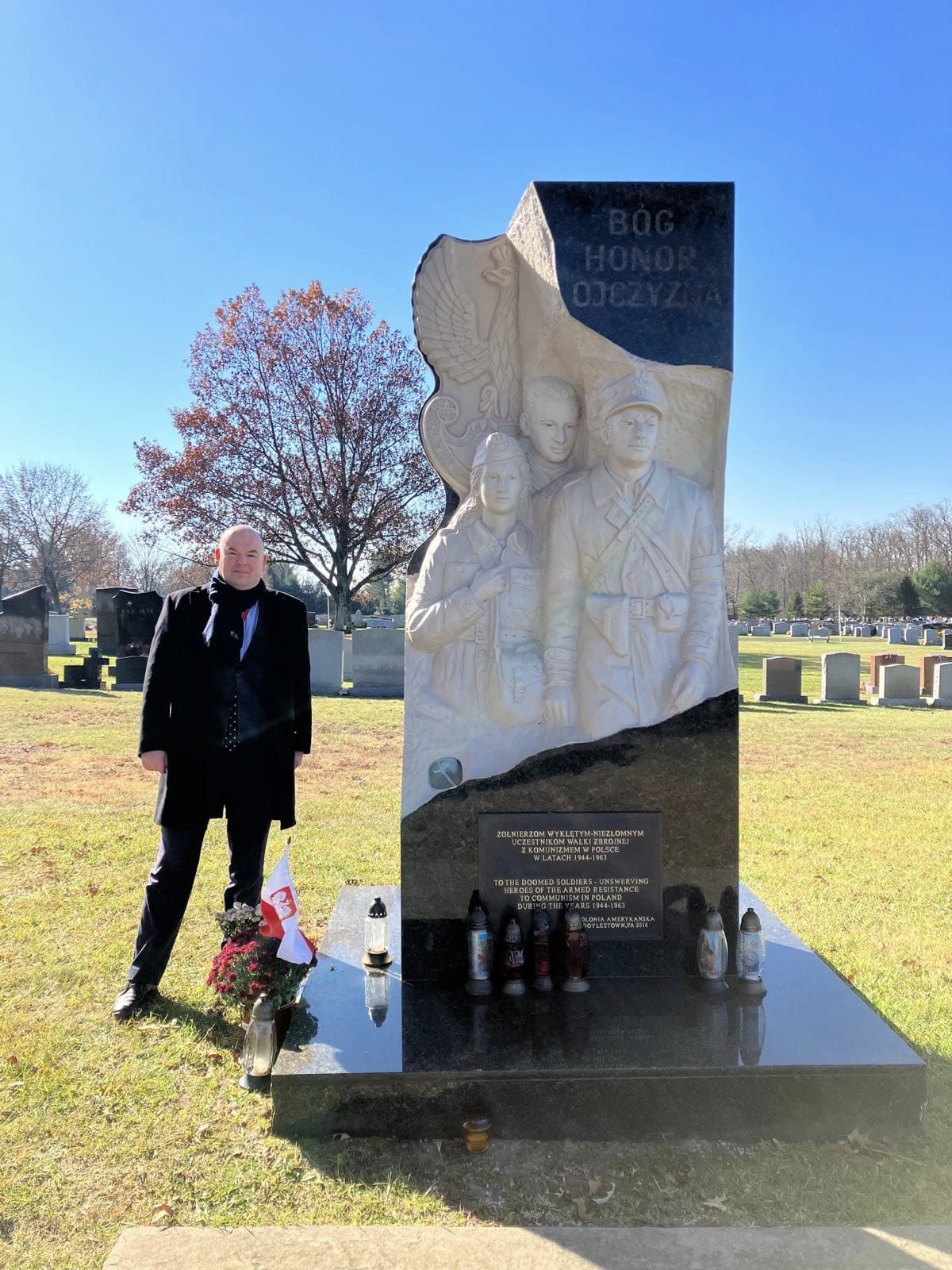 Podczas ostatniego dnia X Zjazdu Kluby Gazety Polskiej Gazeta Polska USA i Kanady, wraz z Posłem Antonim Macierewiczem i przedstawicielami Konsulatu Generalnego RP w Nowym Jorku Minister Jan Dziedziczak złożył wieńce przy pomniku poświęconym ofiarom zbrodni katyńskiej (tzw. pomniku Mściciela). Ten piękny, wzniesiony w 1988 roku monument, upamiętnia ofiary ludobójstwa katyńskiego. Jego autorem jest mistrz Andrzej Pityński. Na cmentarzu w Doylestown Minister Dziedziczak złożył także wieńce przy pomniku Żołnierzy Wyklętych oraz pomniku upamiętniającym ofiar katastrofy smoleńskiej. Zjazd Klubów Gazety Polskiej zakończył się uroczystą Mszą Św. w Narodowym Sanktuarium Matki Bożej Częstochowskiej w Doylestown.