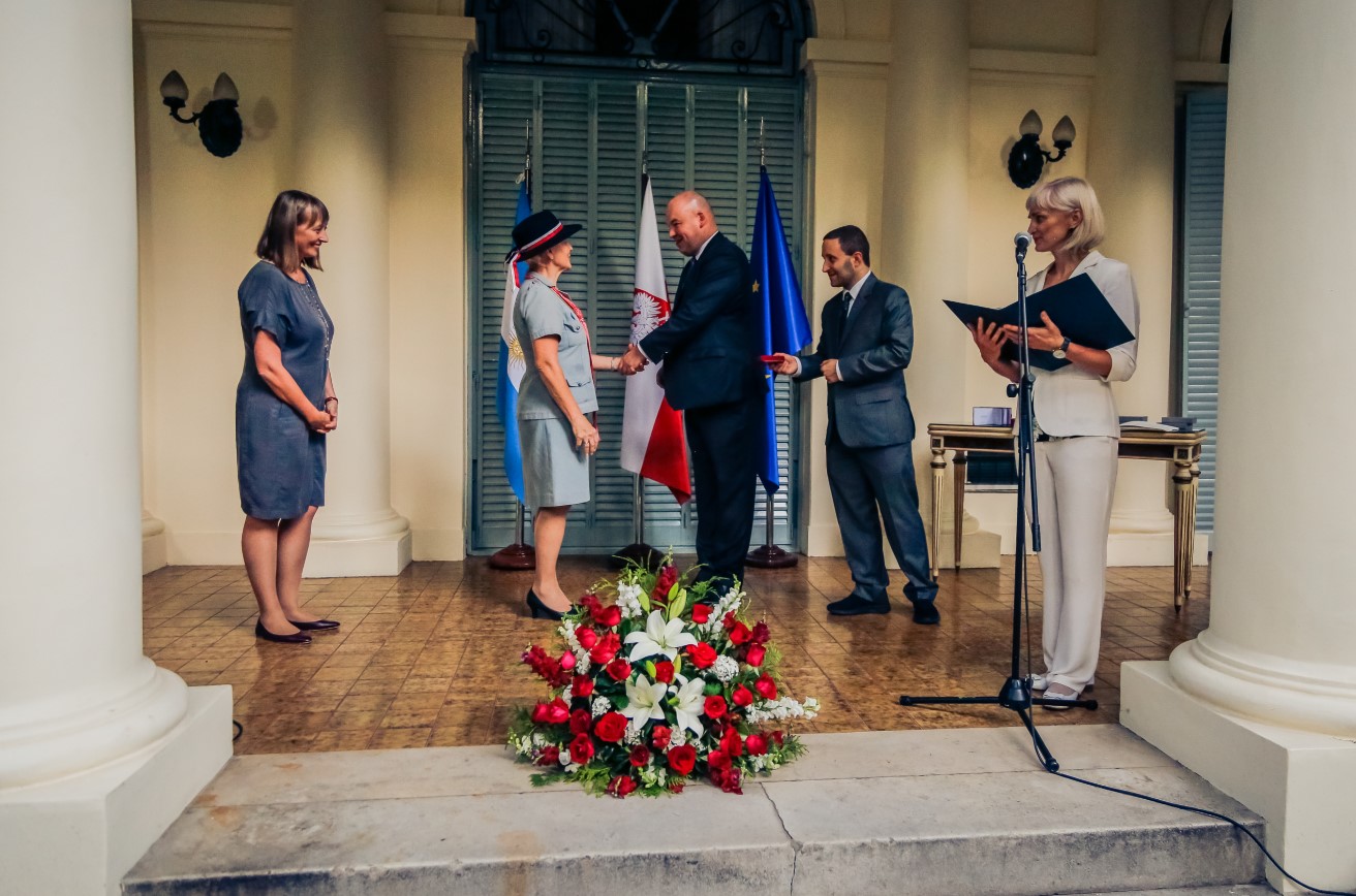 Za działalność wzmacniającą pozycję Polski na arenie międzynarodowej Odznaką Honorową Ministra Spraw Zagranicznych Bene Merito wyróżniono Pana Ricardo Konopkę, Pana Jose Skowrona oraz Panią Krystynę Wardygę. W uznaniu wieloletnich zasług w krzewieniu polskości, Minister Jan Dziedziczak wręczył także – w imieniu Premiera Mateusza Morawieckiego – Medal 100-lecia odzyskania Niepodległości Polskiej Misji Katolickiej w Martin Coronado, Kościołowi Polskiemu w Buenos Aires, Domowi Polskiemu, Związkowi Polaków w Argentynie oraz Bibliotece Polskiej imieniem Ignacego Domeyki.
