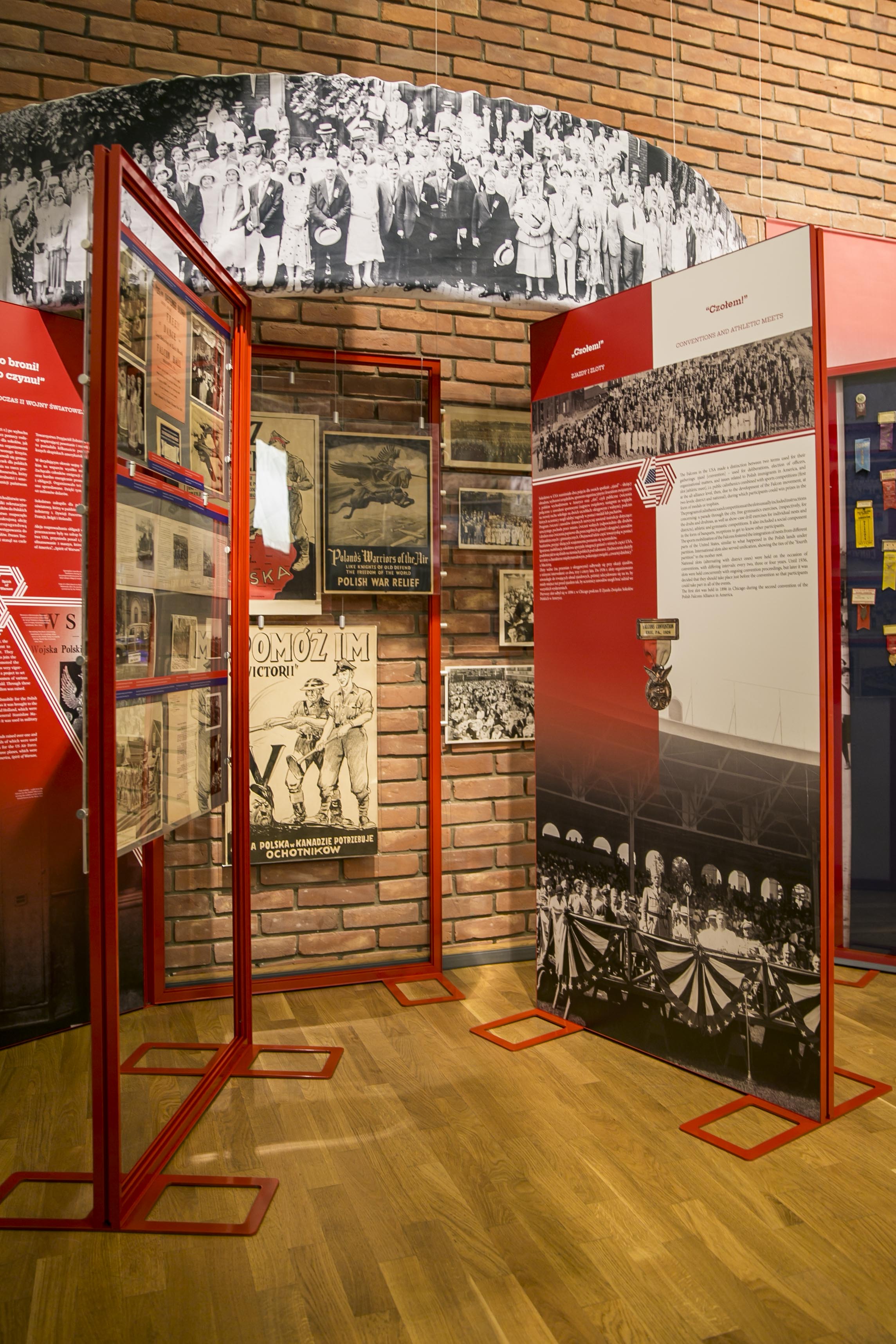 Na wystawie można zobaczyć niemal czterysta unikalnych eksponatów, m.in. list Heleny Paderewskiej, przewodniczącej Polskiego Białego Krzyża (PBK) do Agnieszki Wisły, odznaki z wiązane z Sokolstwem, liczne zdjęcia czy "Memoriał do cywilizowanych narodów świata w sprawie Polski" przekazany przez Związek Sokołów Polskich na początku 1915 r. prezydentowi Stanów Zjednoczonych oraz wszystkim ambasadorom rezydującym w Waszyngtonie.