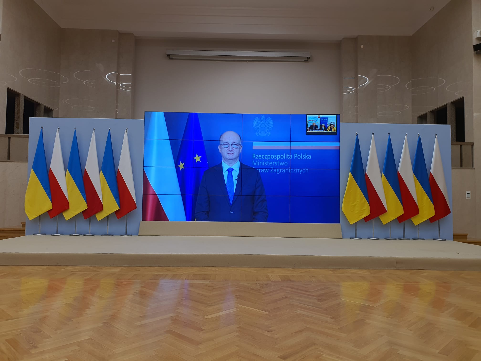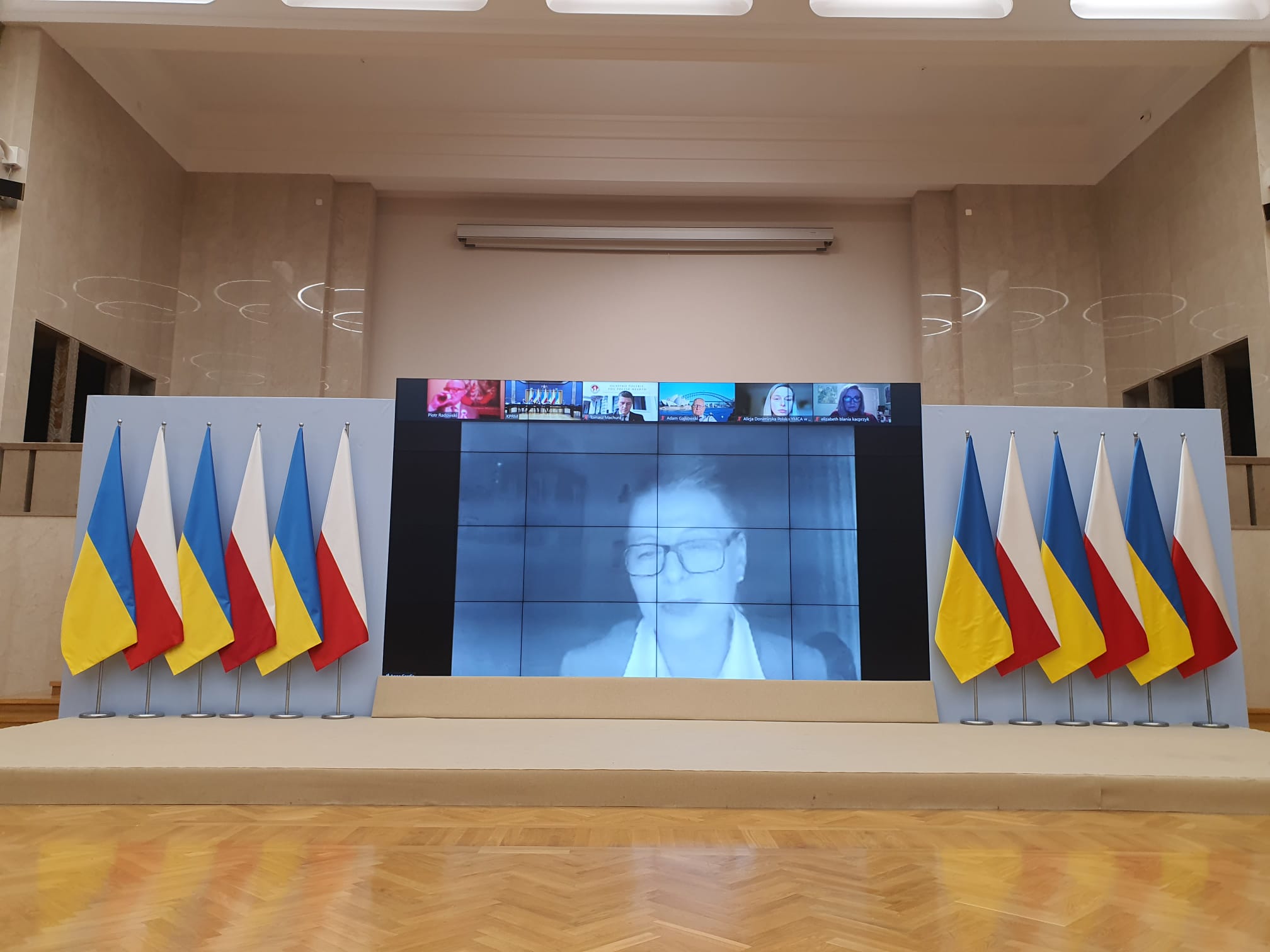 Minister Jan Dziedziczak zaprezentował akcje pomocy Ukrainie podejmowane przez Polonię i Polaków na całym świecie, które były zainspirowane apelem jaki wystosował Pełnomocnik Rządu do spraw Polonii i Polaków za Granicą w pierwszych dniach konfliktu. W drugiej części wystąpienia Minister zaprezentował założenia specjalnych programów realizowanych dla posiadaczy Karty Polaka i ich rodzin z Ukrainy.