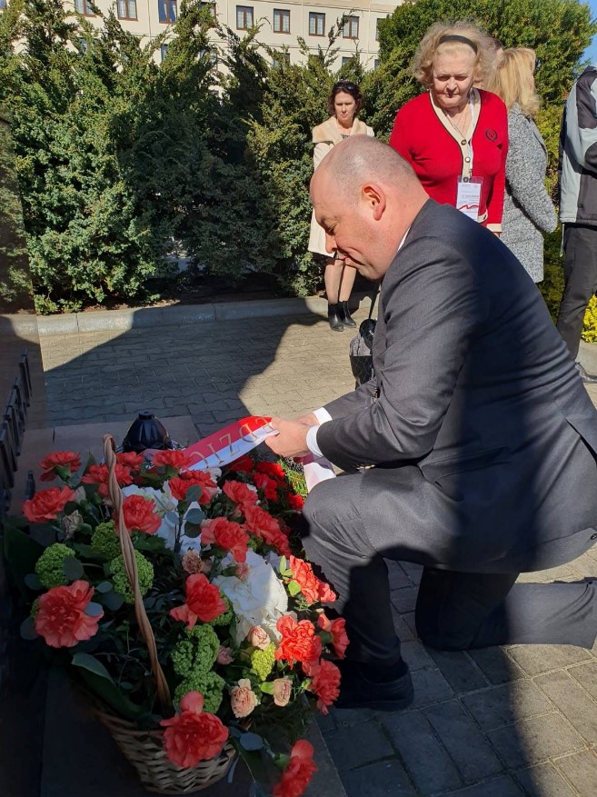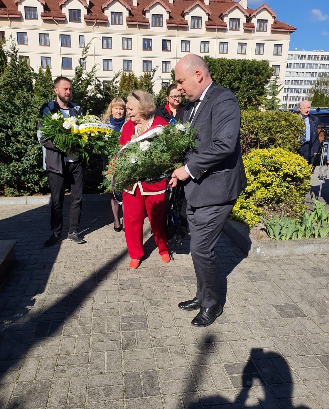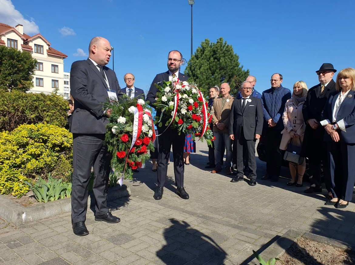 Drugi dzień XXV Forum Polonijnego rozpoczęto od złożenia wieńców pod pomnikiem Świętego Jana Pawła II, który znajduje się na terenie Akademii Kultury Społecznej i Medialnej w Toruniu. W uroczystości, obok Ministra Jana Dziedziczaka, wzięli także udział: Prezes Rządowego Centrum Legislacji Krzysztof Szczucki, posłanka Sejmu litewskiego polskiego pochodzenia Beata Pietkiewicz oraz przedstawiciele Akademii Kultury Społecznej i Medialnej w Toruniu - prorektor dr Maria Laska, dziekan dr Dorota Żuchowska i dyrektor Katarzyna Cegielska oraz liczna grupa Rodaków z całego świata. Warto przypomnieć, że Jan Paweł II został ogłoszony świętym niemal dokładnie 9 lat temu – 27 kwietnia 2014 r. Pamięć o Świętym Janie Pawle II jest deklaracją wiary i patriotyzmu, zwłaszcza dzisiaj, gdy tak wielu deprecjonuje Jego dobre imię.