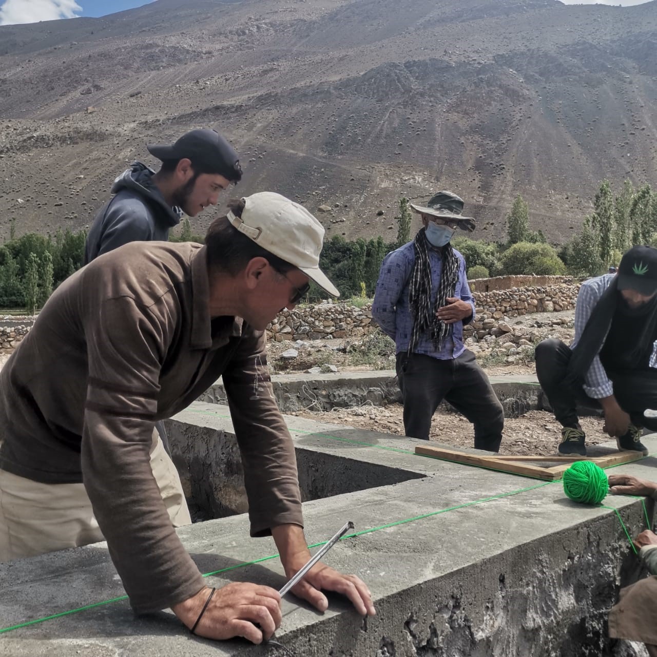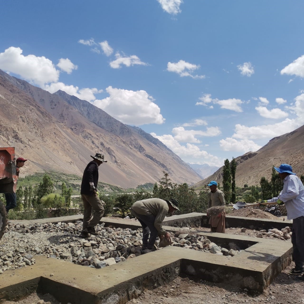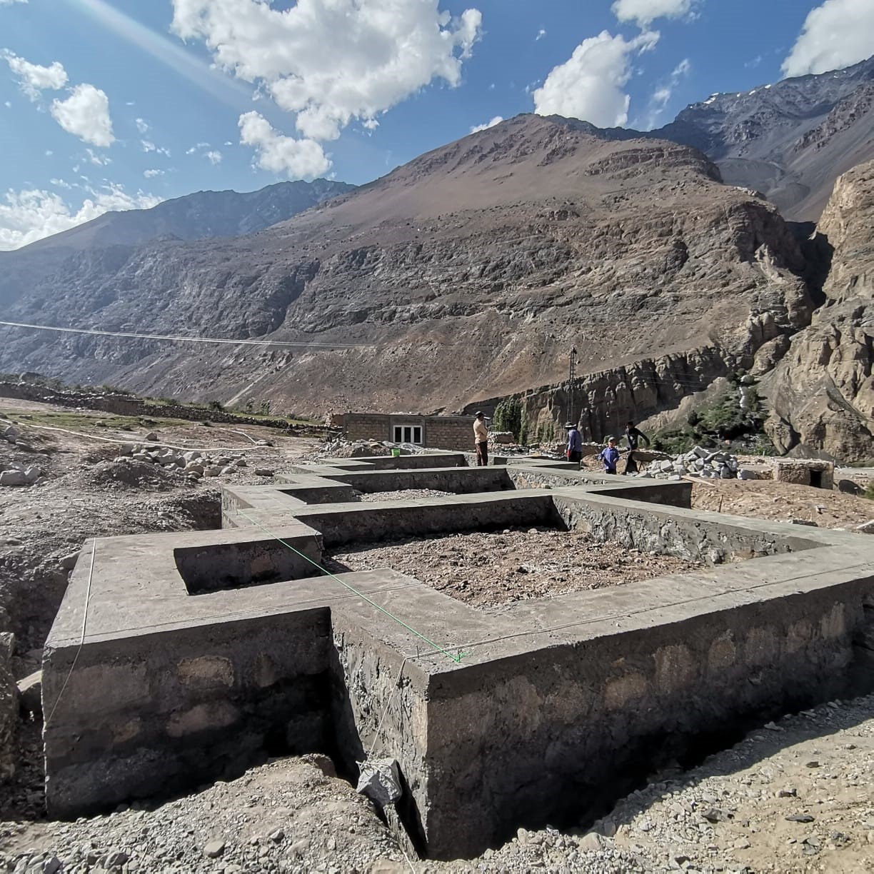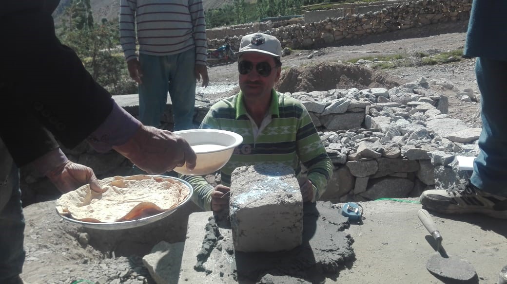 W budowę zaangażowana jest cała wieś Ispinj – mężczyźni pracują na budowie, kobiety natomiast dbają o wyżywienie. Zauważyć należy, że prace są prowadzone w ekstremalnie niekorzystnych warunkach pogodowych – w tym roku Pakistan przeżywa największe ulewy monsunowe od kilkunastu lat, większość kraju cierpi w wyniku powodzi, które dotknęły znaczą cześć kraju, powodując ofiary wśród ludzi, zniszczenia domów, upraw oraz paraliż gospodarki i rolnictwa. Pomimo trudnych warunków pogodowych plac budowy nie ucierpiał znacząco – został on należycie zabezpieczony przed ulewnymi deszczami i powodziami. Prace budowlane zostaną zakończone przed nadejściem zimy i pierwszymi opadami śniegu, co w tym roku przewidywane jest na grudzień.