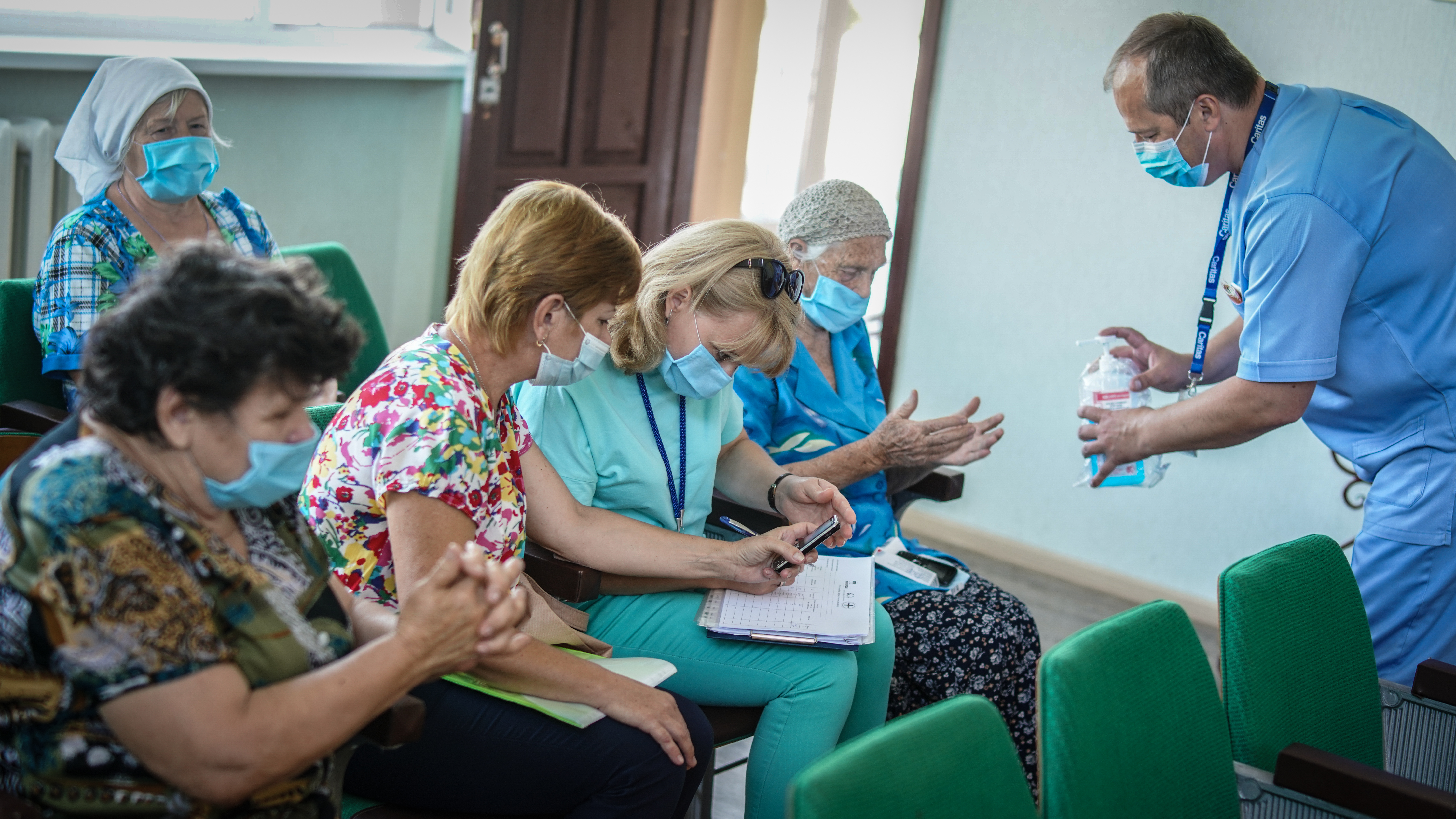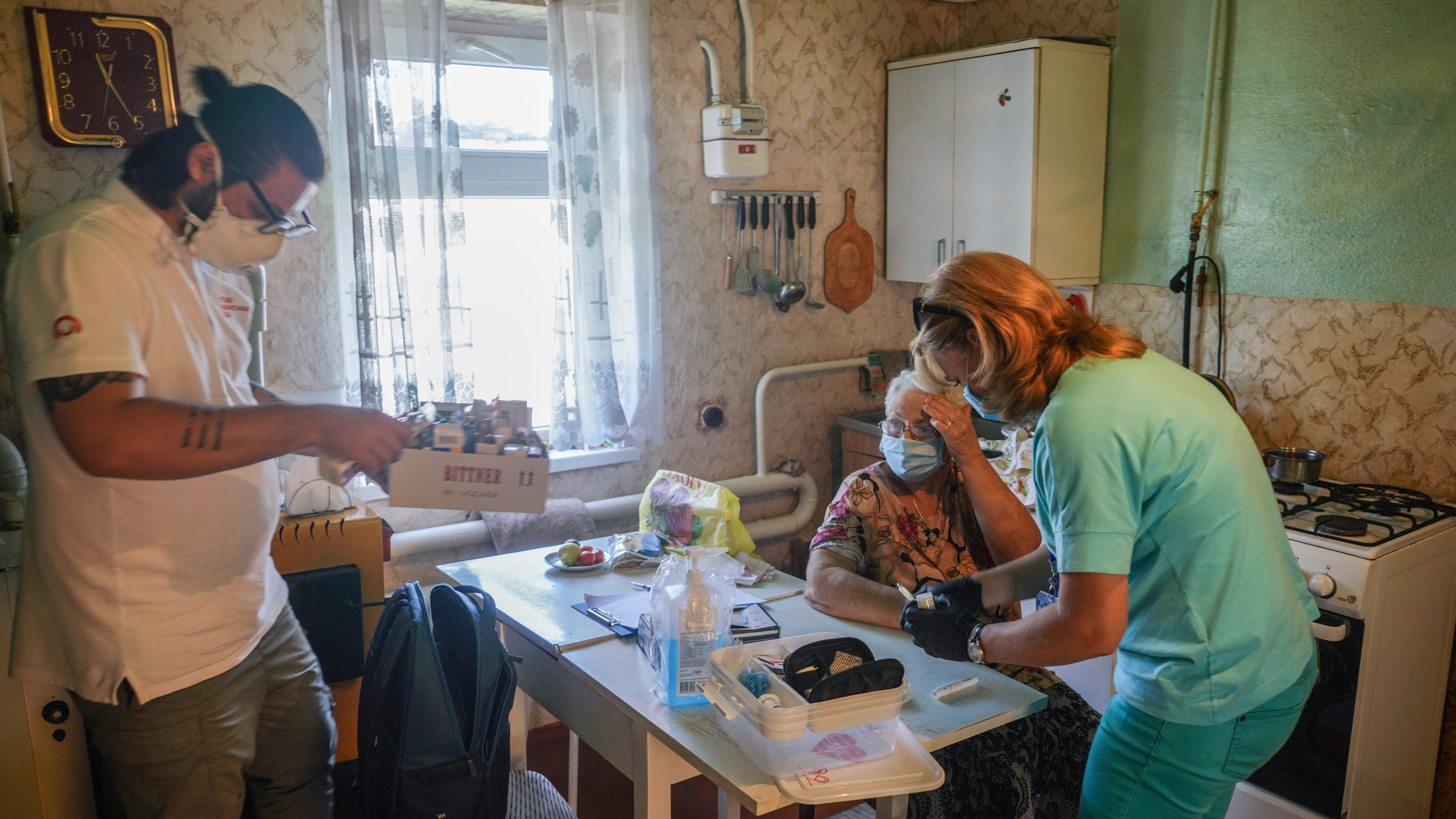Oprócz aktywności nowych NGOs w pięciu miasteczkach Donbasu, w pobliskich wioskach pracują dwie ekipy medyczne, w każdej z ekip pracuje lekarz, pielęgniarka oraz pracownik socjalny. Podczas wizyt realizowane są podstawowe badania medyczne, sprawdzany jest sposób przyjmowania leków przez pacjentów i realizacji zaleceń przez pacjentów, w tym dotyczących higieny i obostrzeń sanitarnych. Obok indywidualnych konsultacji medycznych odbywają się również szkoleniaw zakresie profilaktyki związanej z koronawirusem. Prelekcje w wioskach zrealizował lekarz biorący udział w projekcie. Podczas szkoleń odbyły się prezentacje filmów instruktażowych przygotowanych przez WHO w wersji dla odbiorców rosyjskojęzycznych.
