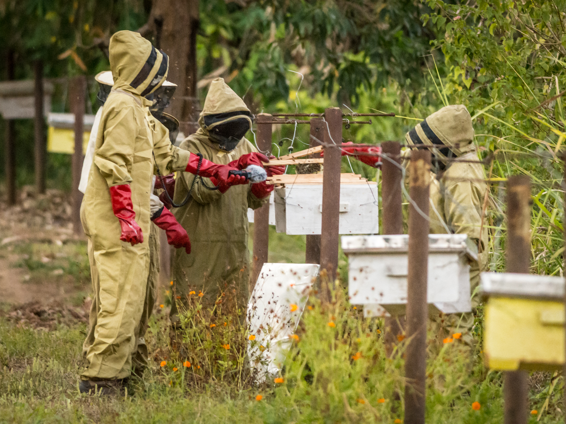 146 rolników wzięło udział w szkoleniu pszczelarskim, poprowadzonym przez miejscowych trenerów, posiadających wiedzę i doświadczenie w pracy z afrykańskimi pszczołami, znacznie bardziej agresywnymi od europejskiej pszczoły miodnej. Pszczelarstwo jest nie tylko źródłem dodatkowego zysku rolników, ale może być również wykorzystywane jako metoda odstraszająca słonie przed wkraczaniem na pola uprawne. W tym celu na ogrodzeniach pól wiesza się ule z pszczołami, które w przypadku natarcia na ogrodzenie atakują intruza, goniąc go przez kolejne kilkanaście metrów. Oprócz uli na ogrodzeniach stosuje się również zapachy i światła, które odstraszają słonie. Mają one doskonałą pamięć - jeżeli w danym miejscu spotka je coś wyjątkowo nieprzyjemnego, będą starały się omijać to miejsce w przyszłości. Tym samym– odstraszane przez pszczoły, zapachy i światło – nie wchodzą na pola uprawne, a ludzie mogą w spokoju doczekać do zebrania plonów i dodatkowo sprzedawać wyprodukowany przez pszczoły miód.