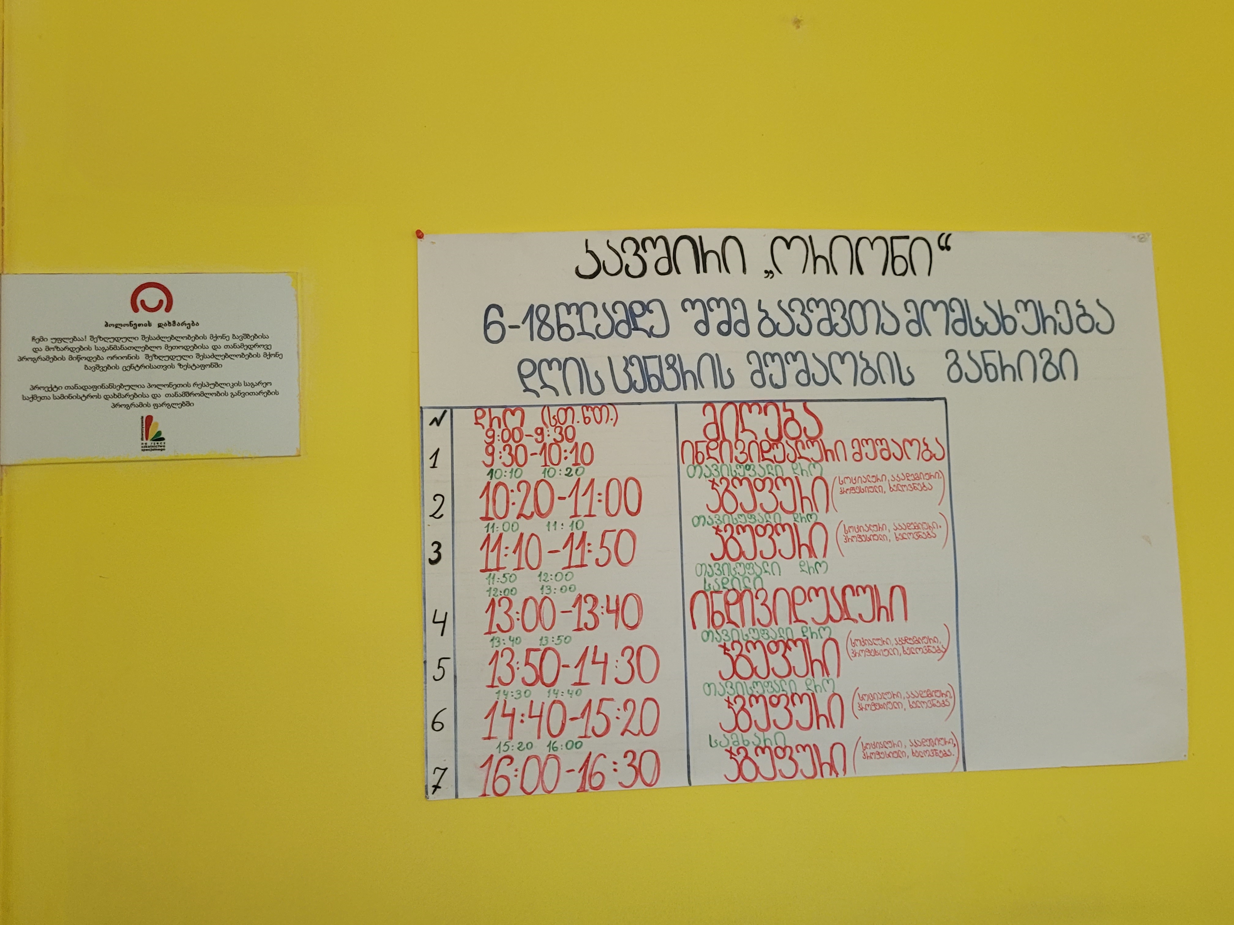 Projekt „Dobry start. Wczesne wspomaganie rozwoju dzieci niepełnosprawnych w Municypalitecie Zestafoni” realizowany przez Stowarzyszenie Na Rzecz Szkolnictwa Specjalnego w Tczewie we współpracy z gruzińskim Stowarzyszeniem Orioni miał na celu stworzenie modelowych rozwiązań dla ciągłej i kompleksowej terapii dzieci niepełnosprawnych już od urodzenia. W ramach projektu działa 7 specjalistycznych gabinetów ze stanowiskami terapeutycznymi z zakresu: hydromasażu i masażu, sensoplastyki i terapii ręki, muzykoterapii, fizjoterapii i elementów integracji sensorycznej, C-Eye i terapii mowy oraz komunikacji pozawerbalnej, terapii według Marii Montessori, terapii włączającej oraz terapii zachowań dla dzieci z autyzmem.