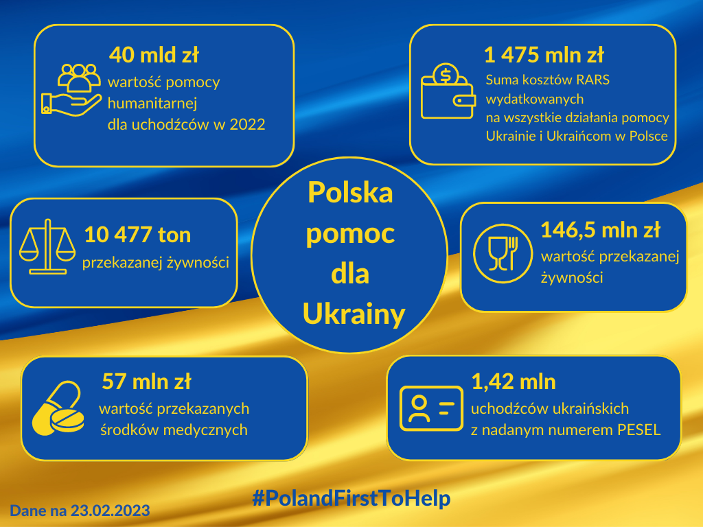 Ukraina jest odbiorcą polskiej pomocy rozwojowej od 2005 r., a obecnie jej największym beneficjentem. W wyniku agresji Rosji na Ukrainę, polska współpraca rozwojowa została przedefiniowana i obecnie koncentruje się przede wszystkim na zapewnieniu pomocy humanitarnej. Według szacunków OECD Polska przeznaczyła w 2022 r. na pomoc humanitarną dla uchodźców z Ukrainy 8,36 mld euro (ok. 1,5% polskiego PKB), stając się największym donorem na rzecz ukraińskich uchodźców w Europie. Ponadto przyjęła największą liczbę uchodźców z Ukrainy. Wg. danych UNHCR liczba osób z Ukrainy w Polsce o statusie uchodźcy przekroczyła 1,55 mln osób. Suma kosztów Rządowej Agencji Rezerw Strategicznych wydatkowanych na wszystkie działania pomocy Ukrainie i Ukraińcom w Polsce wynosi już 1 475 mln zł.