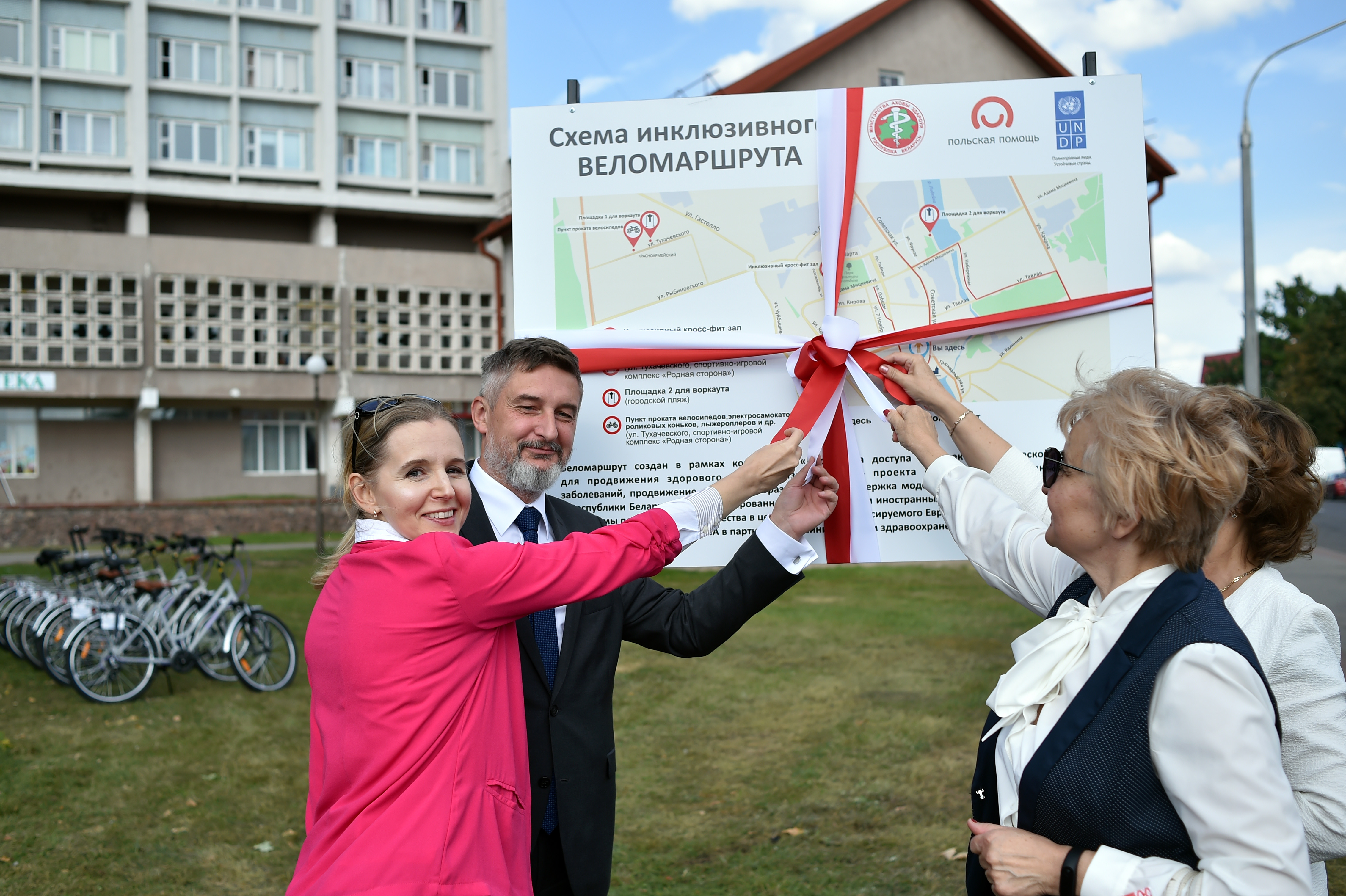 W ramach projektu wdrażanego przez Ambasadę RP w Mińsku we współpracy z przedstawicielstwem Programu Narodów Zjednoczonych ds. Rozwoju (UNDP), na Białorusi powstała 10 kilometrowa ścieżka rowerowa i dwa place przeznaczone do zajęć sportowych dostosowane do potrzeb osób niepełnosprawnych w miejscowości Lida. Ścieżka dostępna jest dla rowerzystów o różnym poziomie sprawności fizycznej oraz dla osób przemieszczających się na wózkach inwalidzkich. Została oznakowana i wyposażona w parkingi dla rowerów. Dodatkowo na specjalnie zaprojektowanych odcinkach można jeździć na hulajnogach, rolkach i nartach. Stworzono również wypożyczalnię sprzętu sportowego, w tym dostosowanego do potrzeb osób niepełnosprawnych. Konsultantem projektu był Alaksandr Audziewicz z Mińska, który porusza się na wózku inwalidzkim. Podkreślił on, że inwestycja ma bardzo ważny wymiar praktyczny, zostały obniżone krawężniki i teraz nawet zwykłe wózki inwalidzkie mogą przejechać centralnymi ulicami miasta. Jednym z punktów uroczystości inaugurującej projekt był wspólny przejazd ścieżką rowerową oraz prezentacja obiektów do ćwiczeń z udziałem niepełnosprawnych białoruskich sportowców.