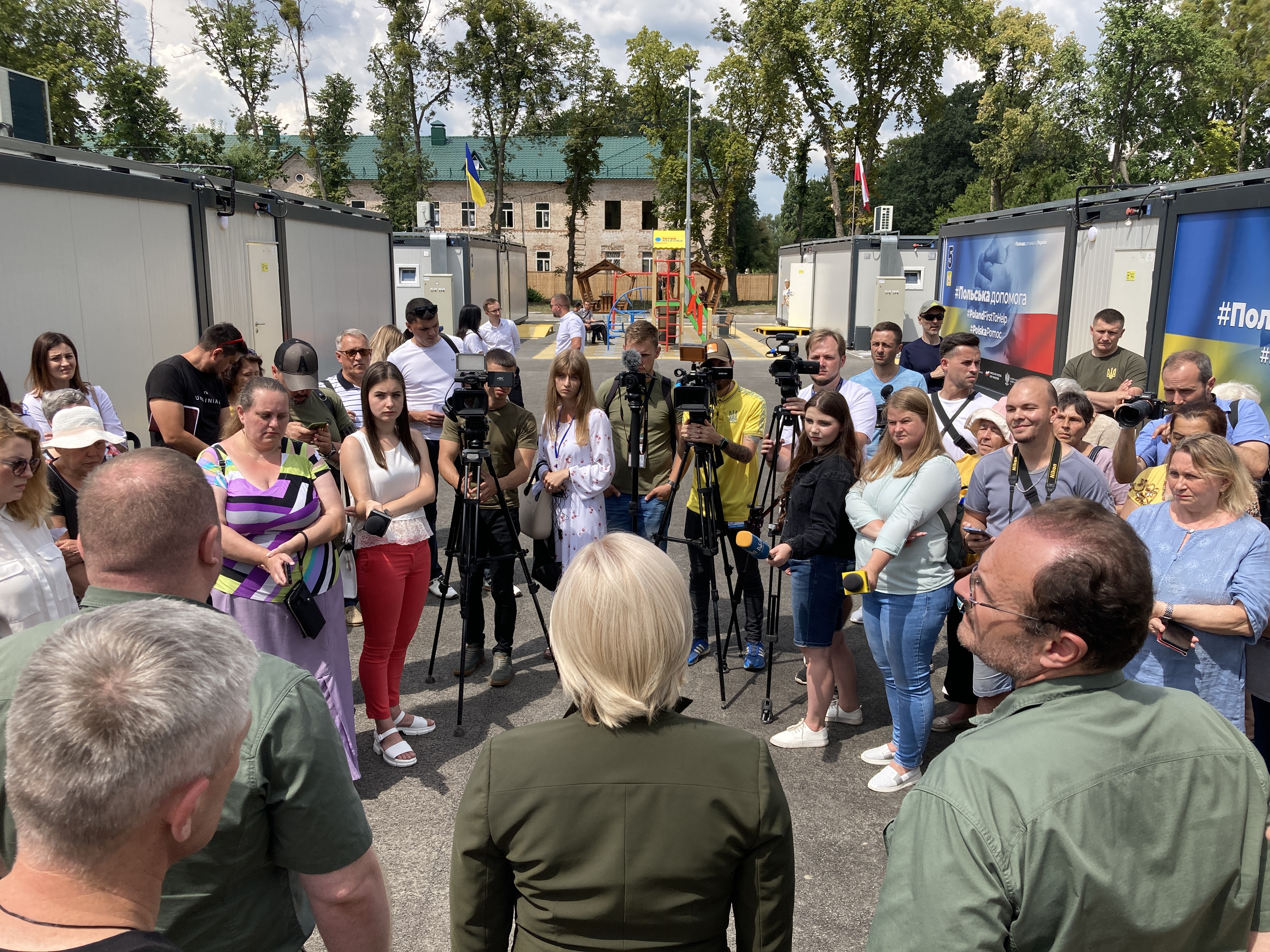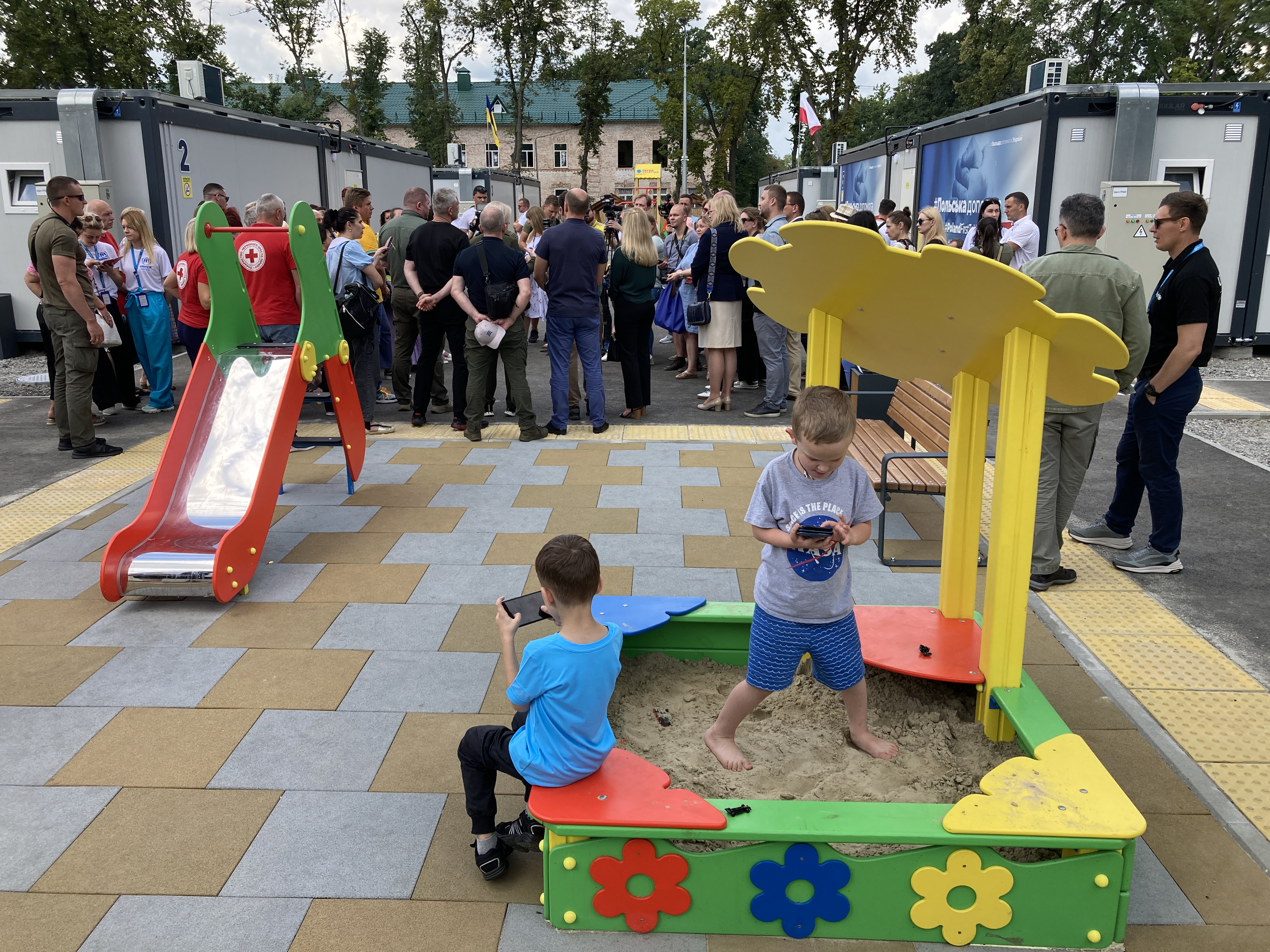 W wyniku napaści dokonanej przez rosyjskiego agresora pomocy humanitarnej potrzebuje niemal połowa ludności Ukrainy, tj. 17,6 milionów osób. W ramach drugiej części polsko-brytyjskiego projektu, po otwarciu osiedla modułowego w miasteczku we Lwowie, 22 lipca 2023 r. otwarto w Połtawie modułowe osiedle dla ponad 520 mieszkańców. W otwarciu modułowego miasteczka wzięli udział m.in.: Iryna Wereszczuk - Wicepremier Ukrainy - Minister Reintegracji Tymczasowo Okupowanych Terytoriów Ukrainy, kierownictwo Połtawskiej Obwodowej Administracji Wojskowej, Rafał Dzięciołowski - Prezes Zarządu Fundacji Solidarności Międzynarodowej (FSM) oraz Tomasz Grzyb - koordynator ds. projektu z ramienia FSM, Anna Kilan-Lipka - kierownik Wydziału Politycznego Ambasady RP w Kijowie, przedstawiciele Pełnomocnika Biura Narodów Zjednoczonych ds. Uchodźców (UNHCR), Funduszu Narodów Zjednoczonych na rzecz Dzieci (UNICEF) oraz Międzynarodowej Organizacji ds. Migracji (IOM).