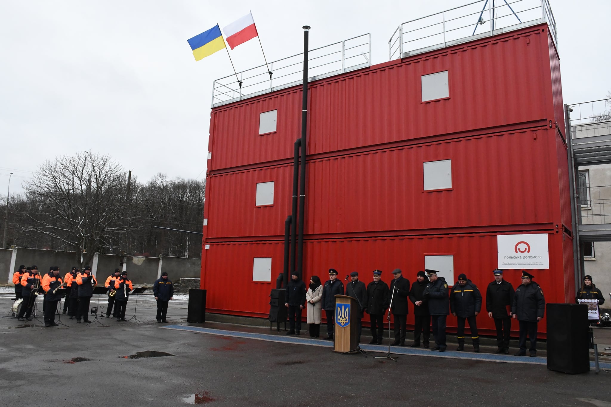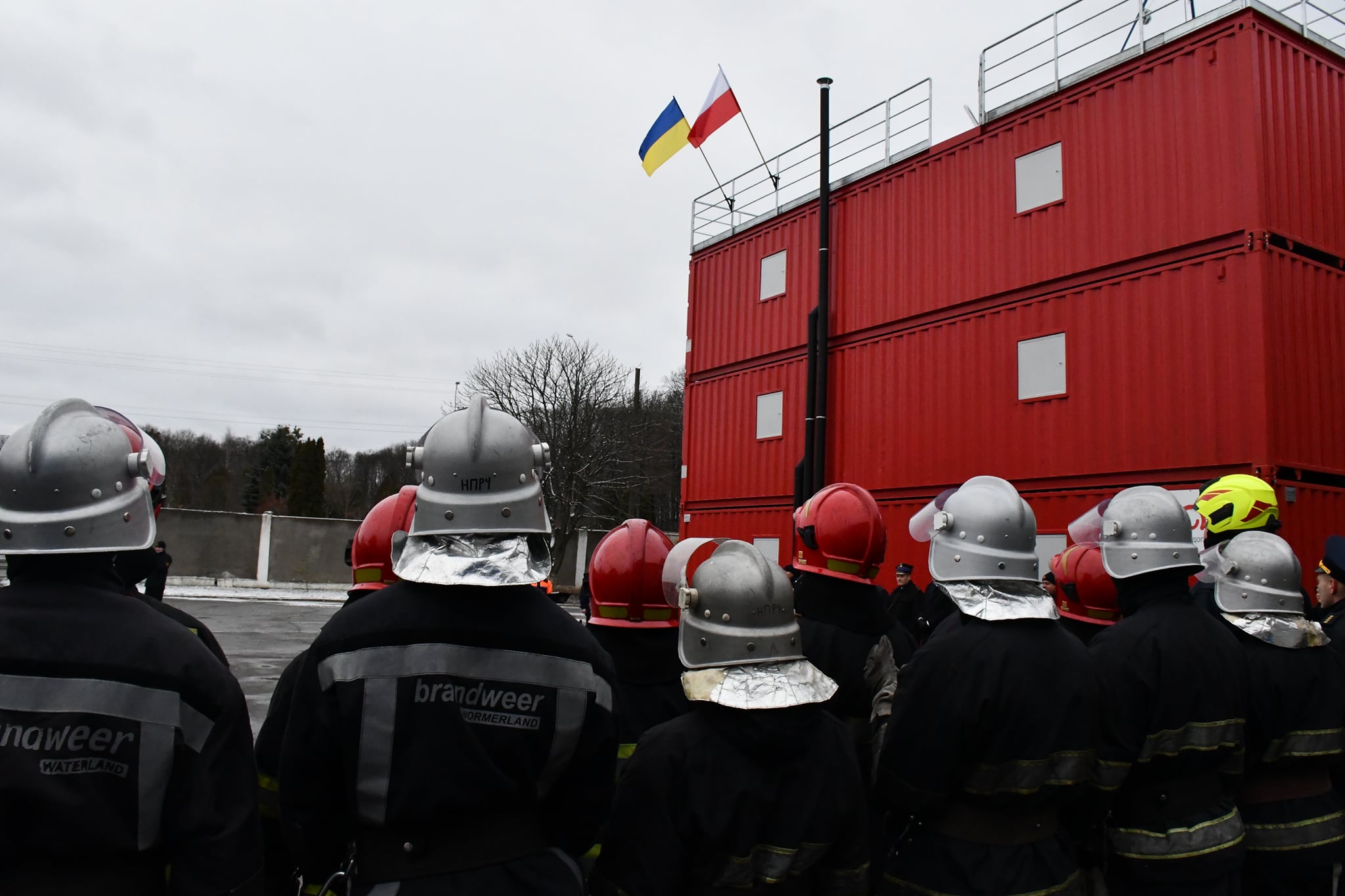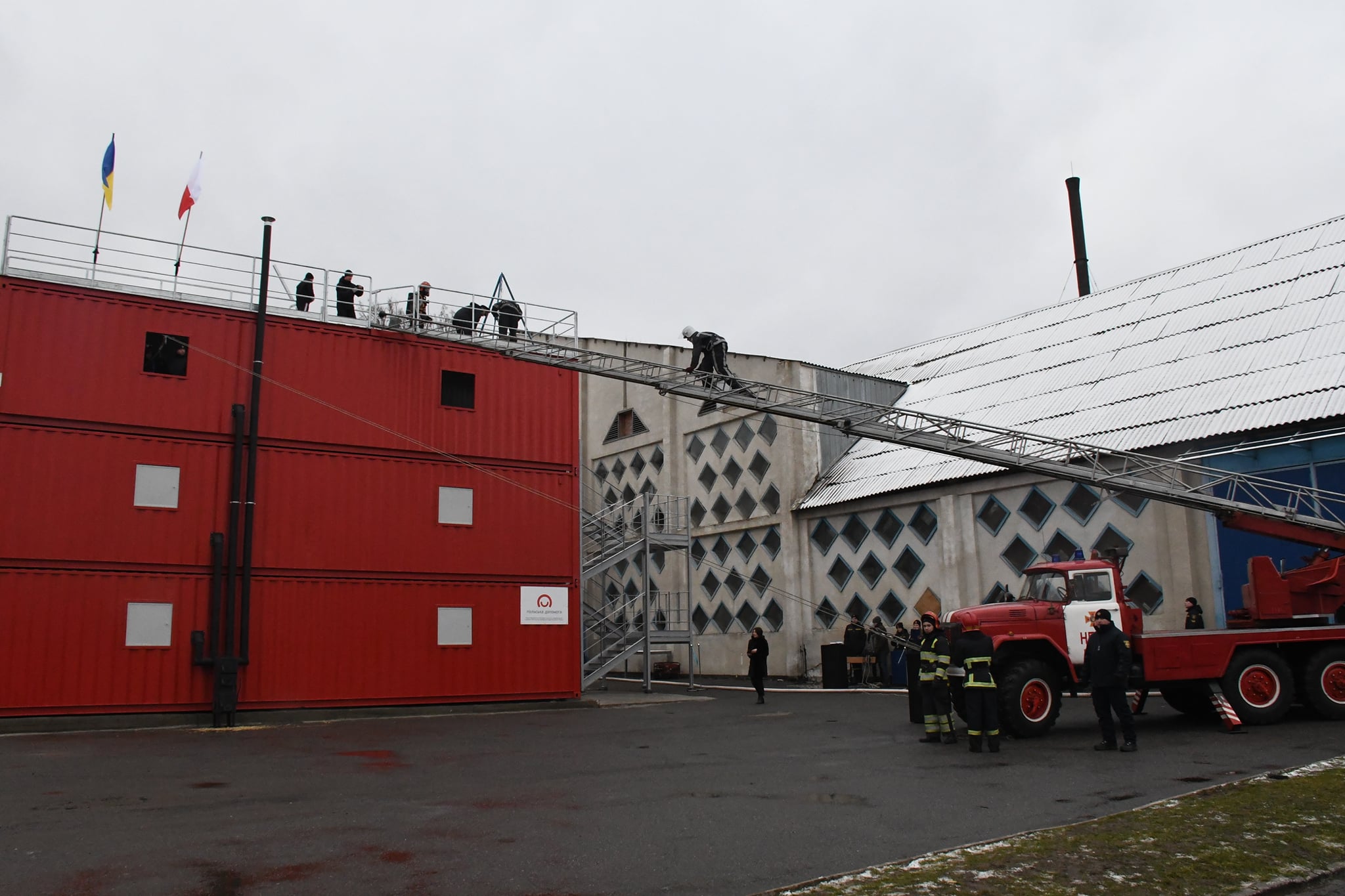 Przekazanie strażackiego trenażera Wyższej Szkole Zawodowej Lwowskiego Państwowego Uniwersytetu Bezpieczeństwa Życia w Winnicy na Ukrainie