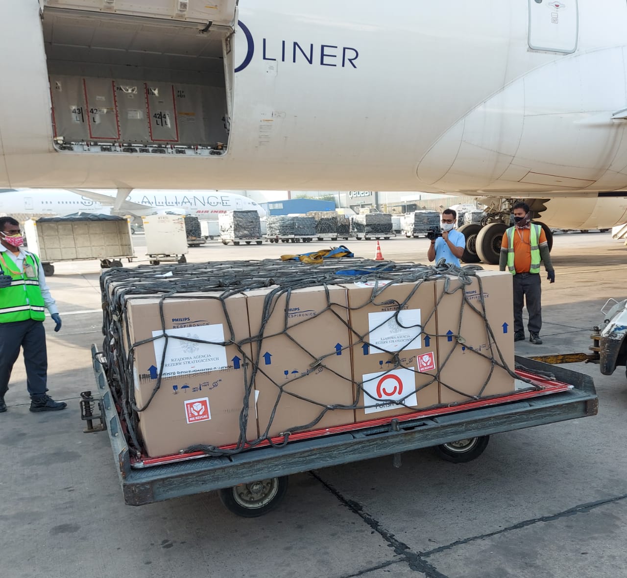 W godzinach porannych do Indii przybył samolot Polskich Linii Lotniczych LOT, na pokładzie, którego dostarczono 100 sztuk koncentratorów tlenu. Była to odpowiedź Polski na apel strony indyjskiej do społeczności międzynarodowej o pilne wsparcie w obliczu dramatycznej sytuacji epidemicznej w związku z COVID-19.