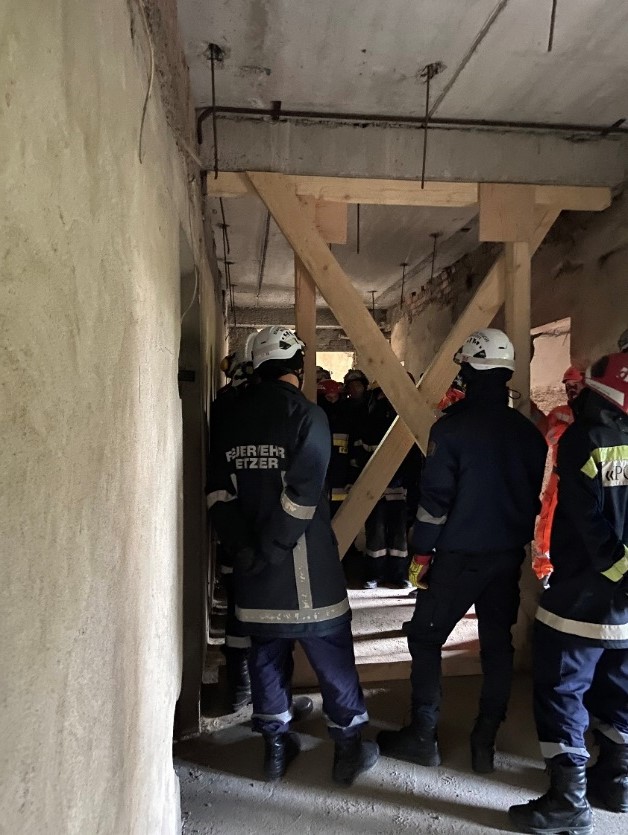 Cztery dni szkoleniowe zrealizowano na poligonie. W należących do władz miasta Bielce nieukończonych obiektach kompleksu szpitalnego ćwiczono scenariusz, uwzględniający różne klasy stabilizacji budynków. Pamiętając o tym jak ważne są zasady prawidłowej i bezpiecznej pracy w obiektach o uszkodzonej konstrukcji prowadzący zajęcia zwracali uwagę na poruszanie się wyłącznie w strefach bezpiecznych, tj. tych które zostały już zabezpieczone. Uczestnicy szkolenia zostali podzieleni na cztery grupy, co pozwoliło na dokładne przećwiczenie poszczególnych założeń przez wszystkich ratowników. Ponadto ogromny nacisk kładziono na bezpieczne posługiwanie się narzędziami, z których większość została zakupiona w ramach środków z projektu.