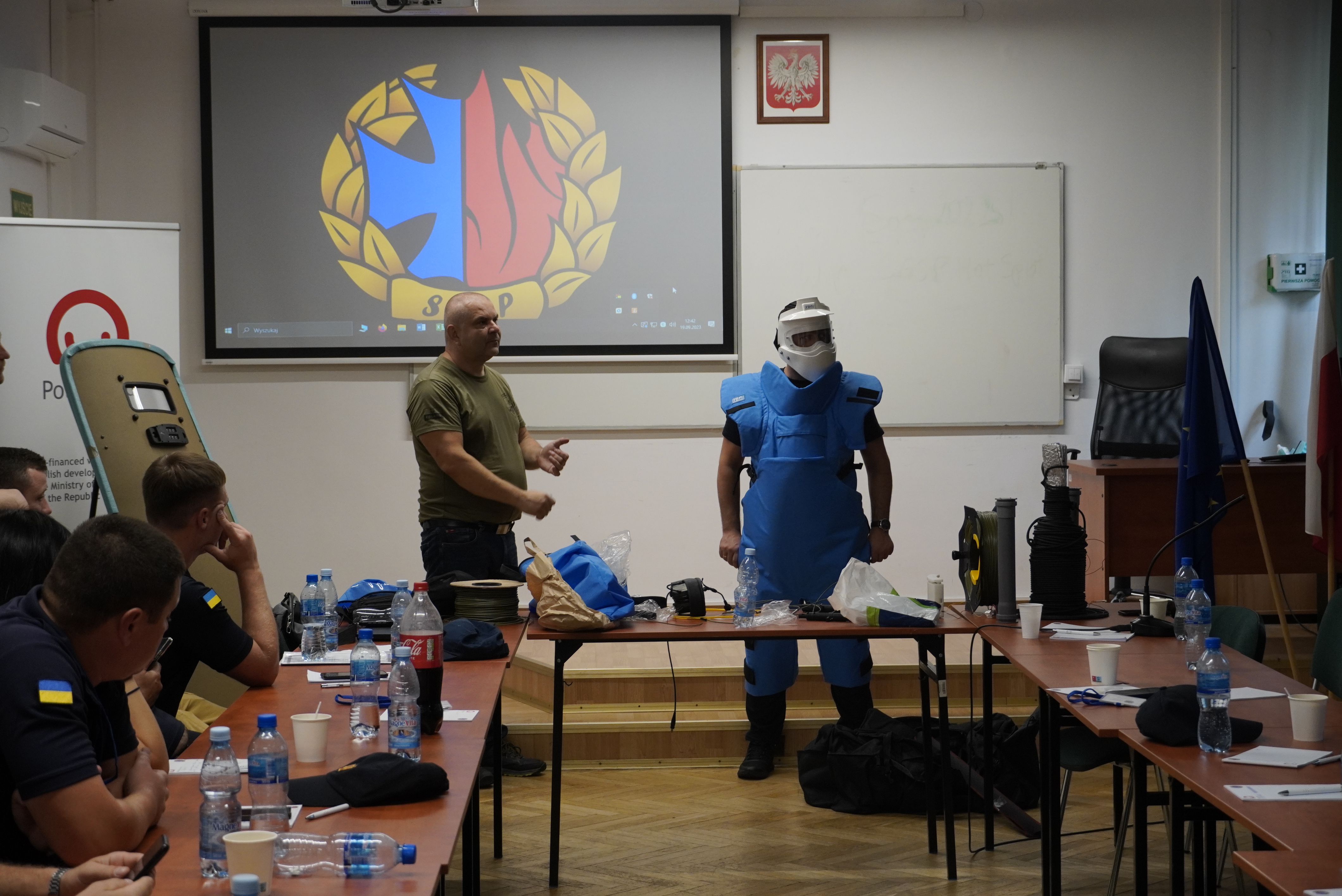 W 2023 r. opracowano analizę przygotowania ukraińskich jednostek do przeciwdziałania zagrożeniom CBRNe. Stanowiła ona punkt wyjściowy dla kolejnych działań. W dniach 18-22 września 2023 r. w Warszawie zorganizowano specjalistyczne szkolenie dla 22 funkcjonariuszy Państwowej Służby Ukrainy ds. Sytuacji Nadzwyczajnych. Szkolenia przeprowadzono w taki sposób, aby mogli oni przekazywać wiedzę dalej w swoim państwie. W związku z tym, zakupiono i przekazano stronie ukraińskiej wyposażenie niezbędne dla prowadzenia szkoleń – tarczę balistyczną, urządzenie do testowania dróg oddechowych i zestaw linowo-hakowy. Zakupiono także 2 komplety ubrań balistycznych oraz detektor fotojonizacyjny do wykrywania zanieczyszczeń powietrza.