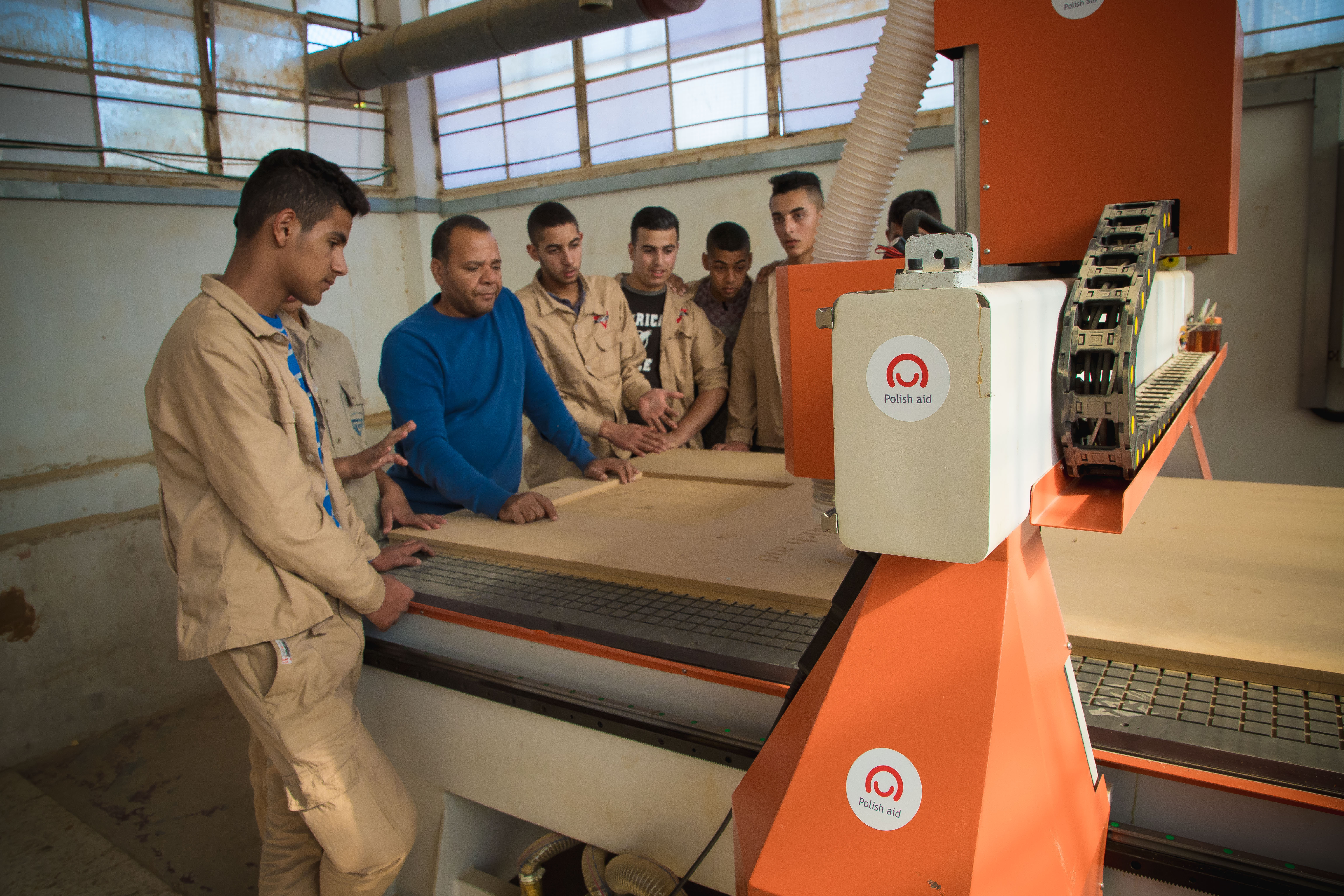 Centrum Szkoleń Zawodowych w Jerycho należy do najprężniejszych instytucji prowadzących szkolenia zawodowe na Zachodnim Brzegu. Aby jednak sprostać wymogom rynku pracy i zwiększyć szanse absolwentów na znalezienie zatrudnienia konieczne jest stałe podnoszenie jakości oferty szkoleniowej, uwzględniającej postęp techniczny i nowoczesne technologie. W ramach realizacji projektu, dzięki współpracy z Biurem Przedstawiciela RP w Ramallah, udało się zakupić specjalistyczne maszyny do elektronicznej obróbki drewna i metalu zastępujące dalece niewystarczającą metodę obróbki ręcznej. Prawidłowe wykorzystanie profesjonalnego sprzętu zostało zagwarantowane dzięki przeszkoleniu kadry ośrodka, aktualizacji programu nauczania, a także zatrudnieniu inżyniera wzornictwa przemysłowego. W ramach prowadzonych zajęć z nowoczesnego sprzętu będzie korzystać 70 podopiecznych placówki edukacyjnej. Projekt zmobilizował także władze Centrum do skierowania kilku członków swojego personelu do udziału w dwuletnich, specjalistycznych szkoleniach z projektowania i wzornictwa przy wykorzystaniu zakupionego wyposażenia. Wagę projektu w procesie modernizacji sektora edukacji zawodowej oraz pobudzania ducha przedsiębiorczości w Palestynie podkreślano podczas wieńczącego projekt Dnia Otwartego, na którym obecni byli liczni przedstawiciele administracji rządowej i izb handlowych, a także Minister Pracy i Edukacji Palestyny.