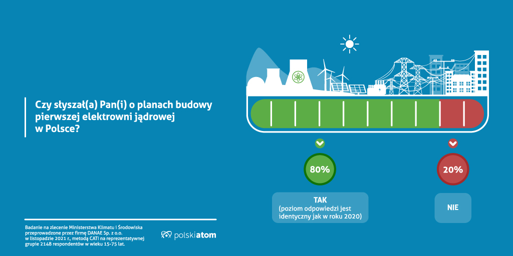 Jednocześnie 80% badanych potwierdziło, że słyszało o planach budowy pierwszej elektrowni jądrowej w Polsce.