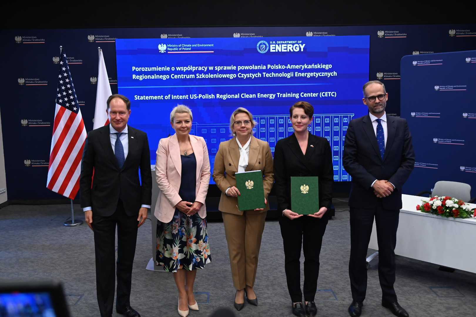 Minister Klimatu i Środowiska Anna Moskwa i Zastępca Sekretarza do spraw Energii USA, Kathryn Huff podpisały porozumienie w sprawie utworzenia w Polsce Regionalnego Centrum Szkoleniowego Czystych Technologii Energetycznych. Uroczystość odbyła się 21 września 2023 r. w Ministerstwie Klimatu i Środowiska.