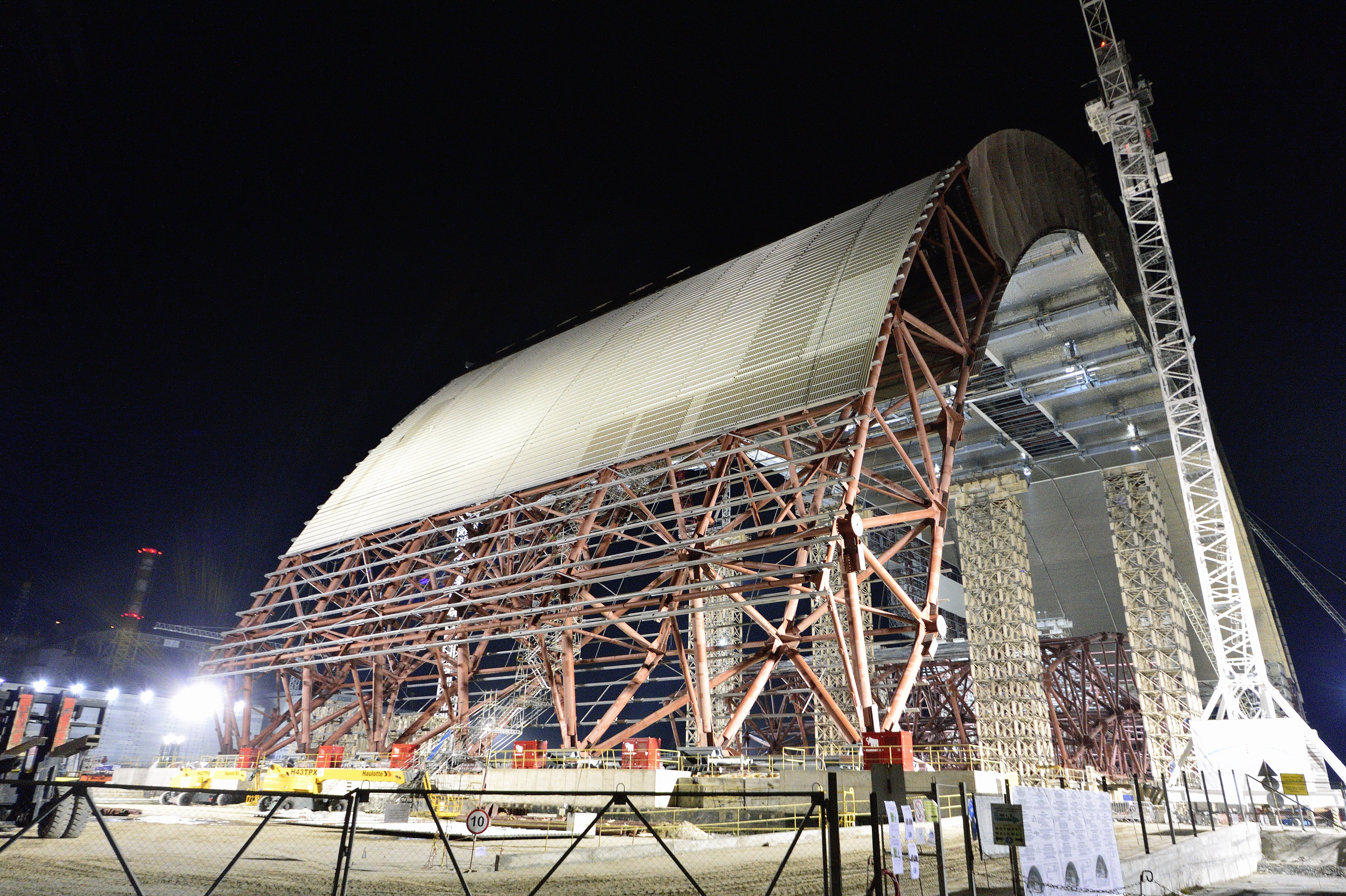 „Prace montażowe prowadzone były w odległości 330 m od radioaktywnych zgliszczy. Kopuła została przesunięta na szynach nad istniejący sarkofag. Jest to największa w historii przesuwna budowla na świecie, porównywana swym rozmachem do budowy Wieży Eiffla. Najbardziej charakterystycznym momentem projektu było zamontowanie i nasunięcie nad uszkodzony reaktor sarkofagu w postaci stalowej kopuły o rozmiarach 150 m (szerokość) x 150 m (wysokość) x 250 m (rozpiętość) i wadze 60 tyś ton” poinformował Mostostal Kraków.