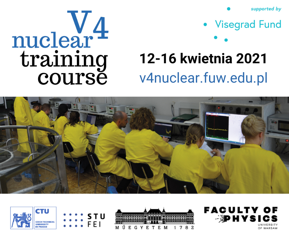 Od poniedziałku 12 kwietnia trwa "V4 Nuclear Training Course". Jest to inicjatywa czterech uczelni z krajów grupy Wyszehradzkiej: Uniwersytetu Technologiczno-Ekonomicznego w Budapeszcie, Czeskiego Uniwersytetu Technicznego w Pradze, Politechniki Słowackiej w Bratysławie oraz Uniwersytetu Warszawskiego.