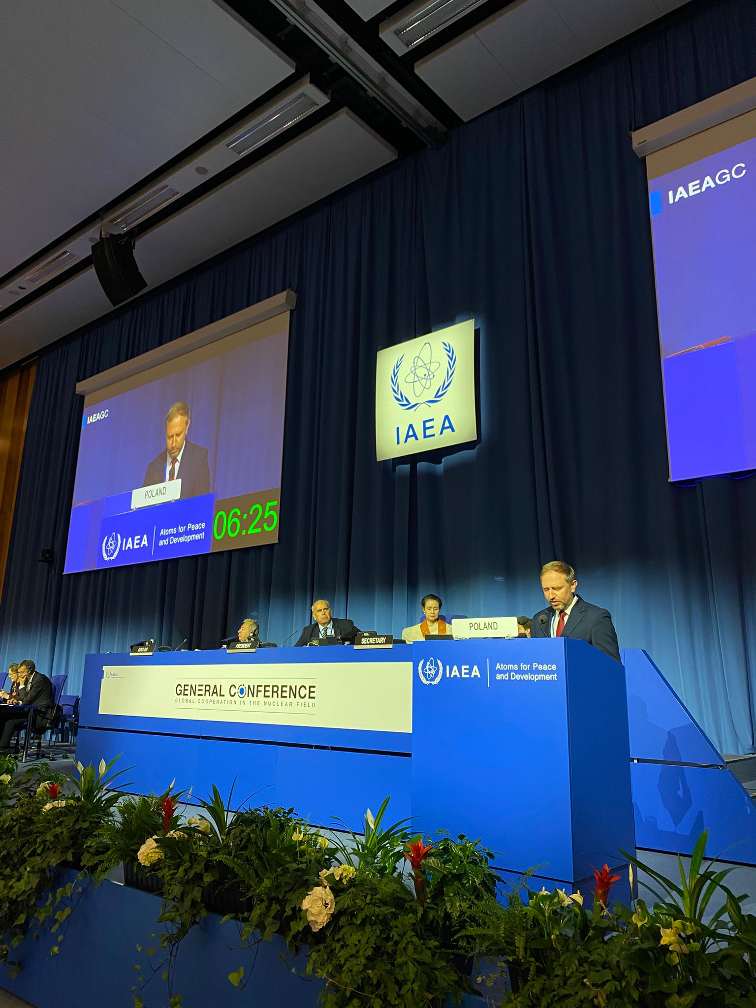 Wiceminister Wojciech Wrochna, przedstawiając stanowisko naszego kraju na forum MAEA podkreślił, że polski rząd uważa energetykę jądrową za kluczowe, dyspozycyjne źródło czystej energii oraz, że Polska postrzega energetykę jądrową jako niezbędny i nieodzowny element niskoemisyjnego miksu energetycznego.