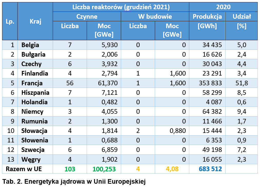 Opracowano w DEJ na podstawie: WNN, NucNet, Power, Reuters, MAEA, EuroStat