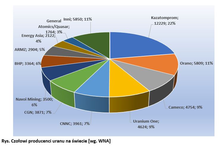 Infografika - Czołowi producenci uranu na świecie [wg. WNA] - w załączeniu