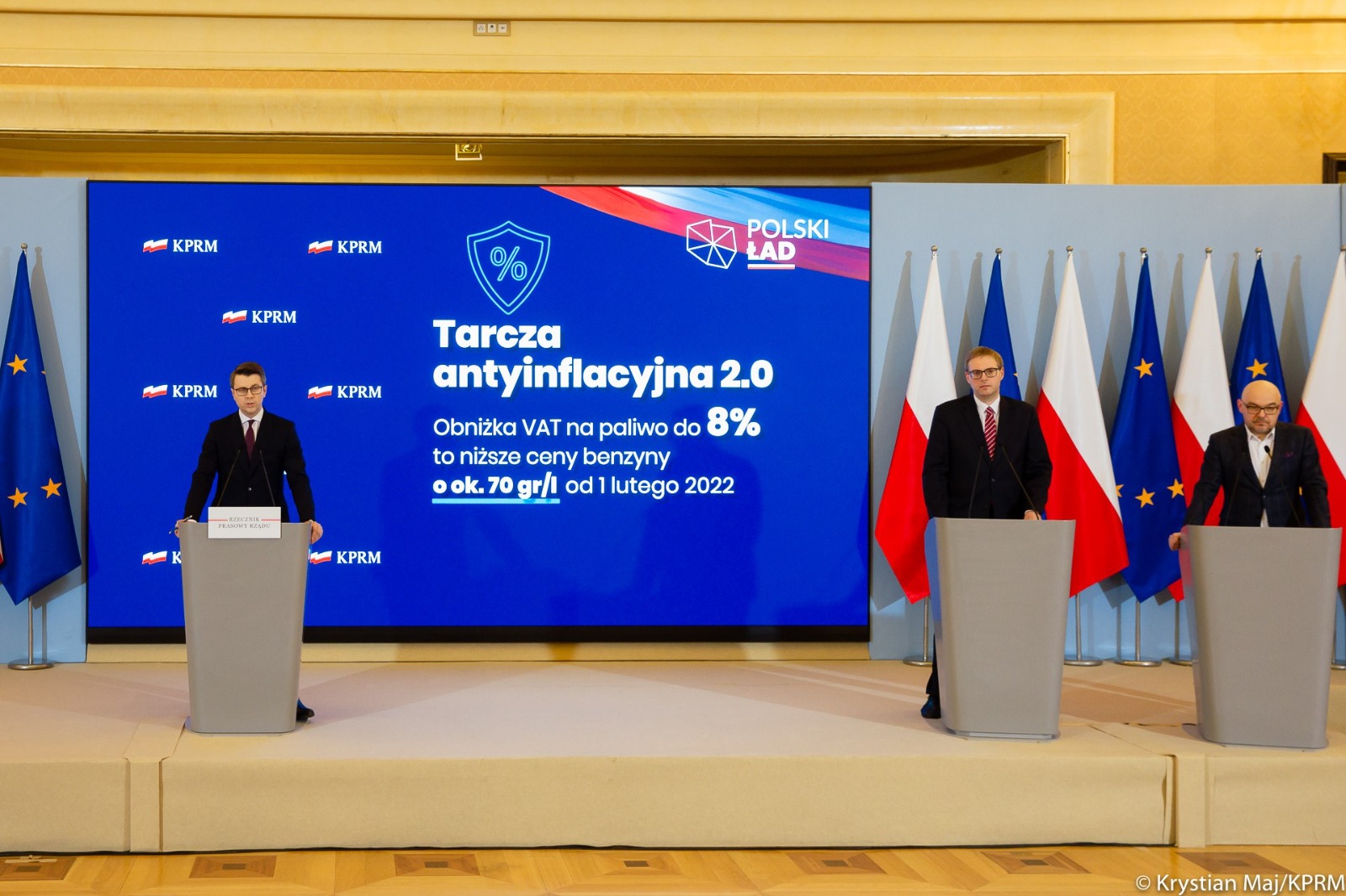 W przyszłym tygodniu ogłosimy Tarczę Antyinflacyjną 2.0 – to wzmocnione narzędzie na rzecz walki z inflacją. Już od 1 lutego 2022 r. zmniejszamy VAT na paliwo z 23 proc. do 8 proc. To oznacza oszczędność na stacji o ok. 70 gr za litr benzyny lub o ok. 40 gr za litr gazu.