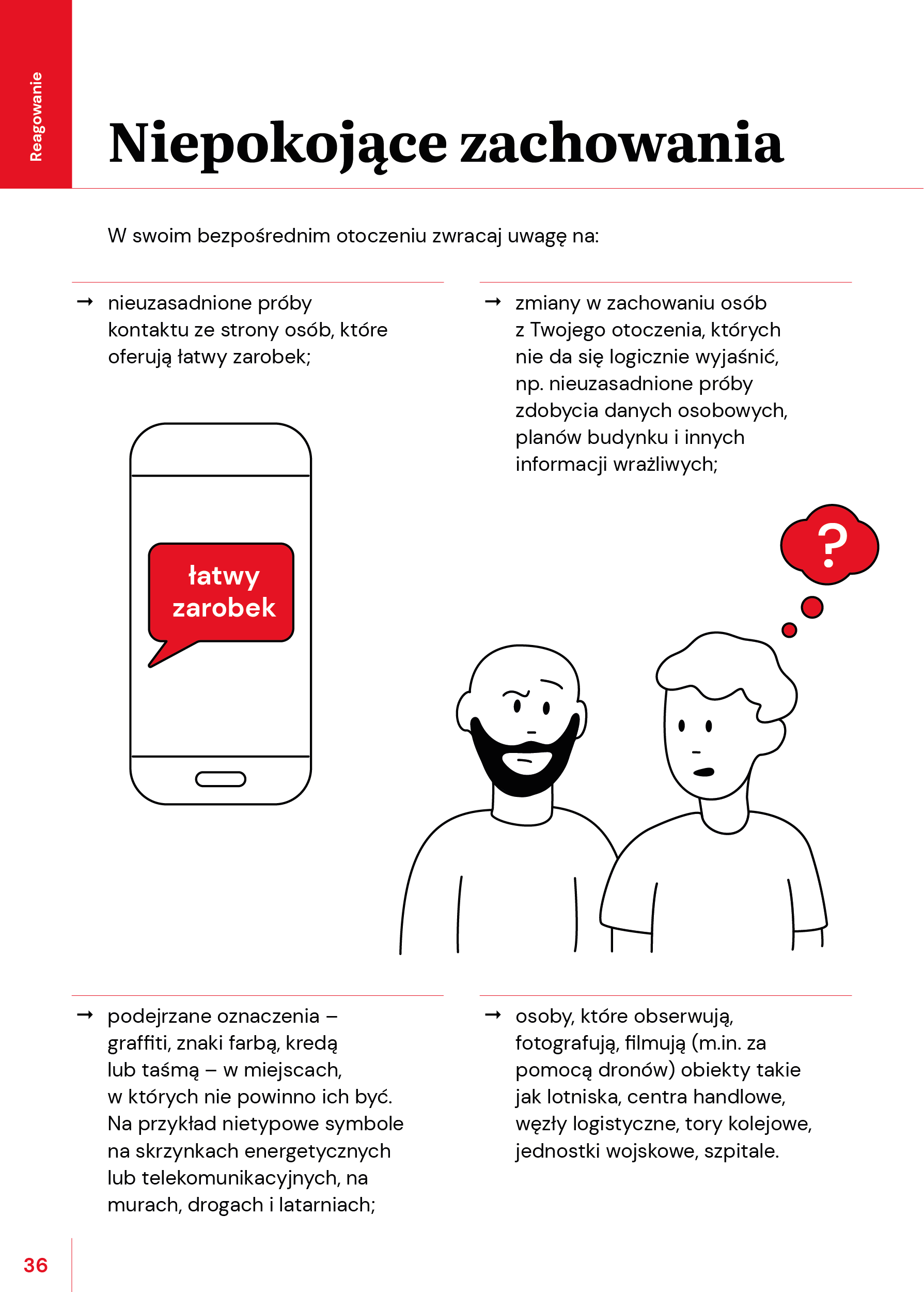 - osoby, które obserwują, fotografują, filmują (m.in. za pomocą dronów) obiekty takie jak lotniska, centra handlowe, węzły logistyczne, tory kolejowe, jednostki wojskowe, szpitale.
